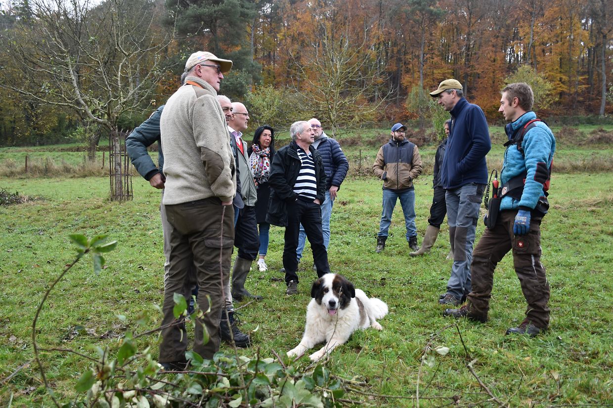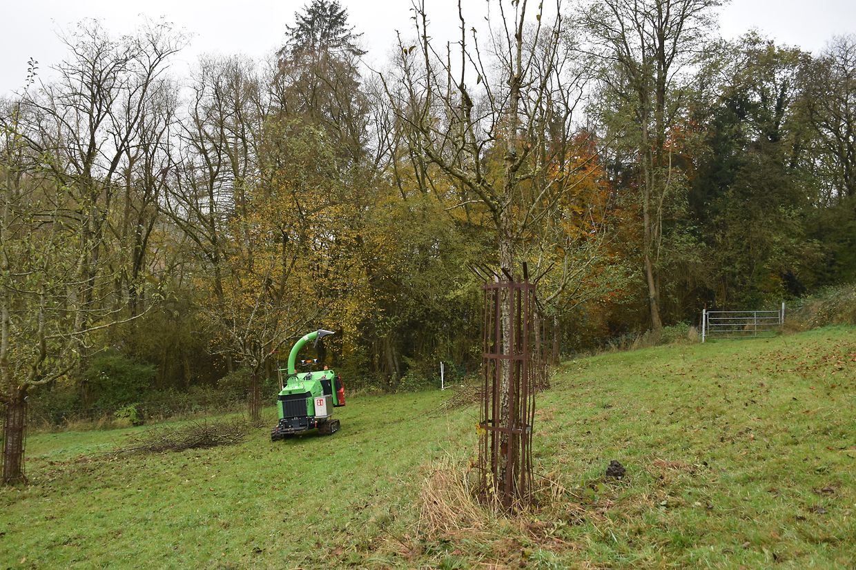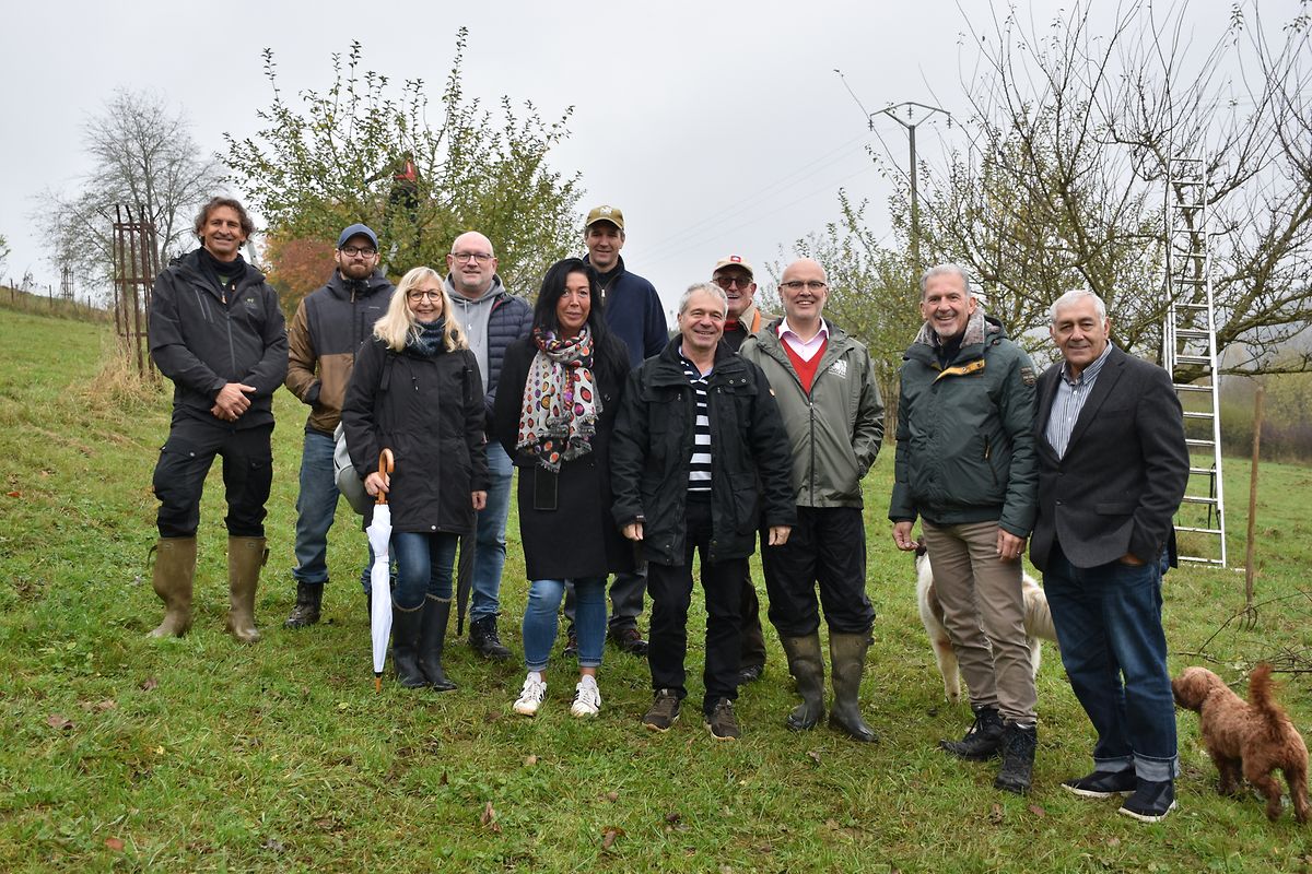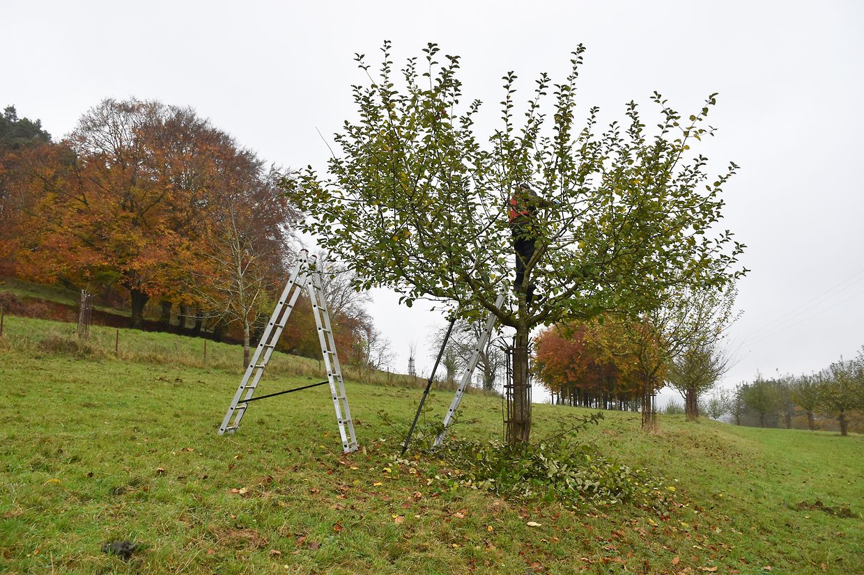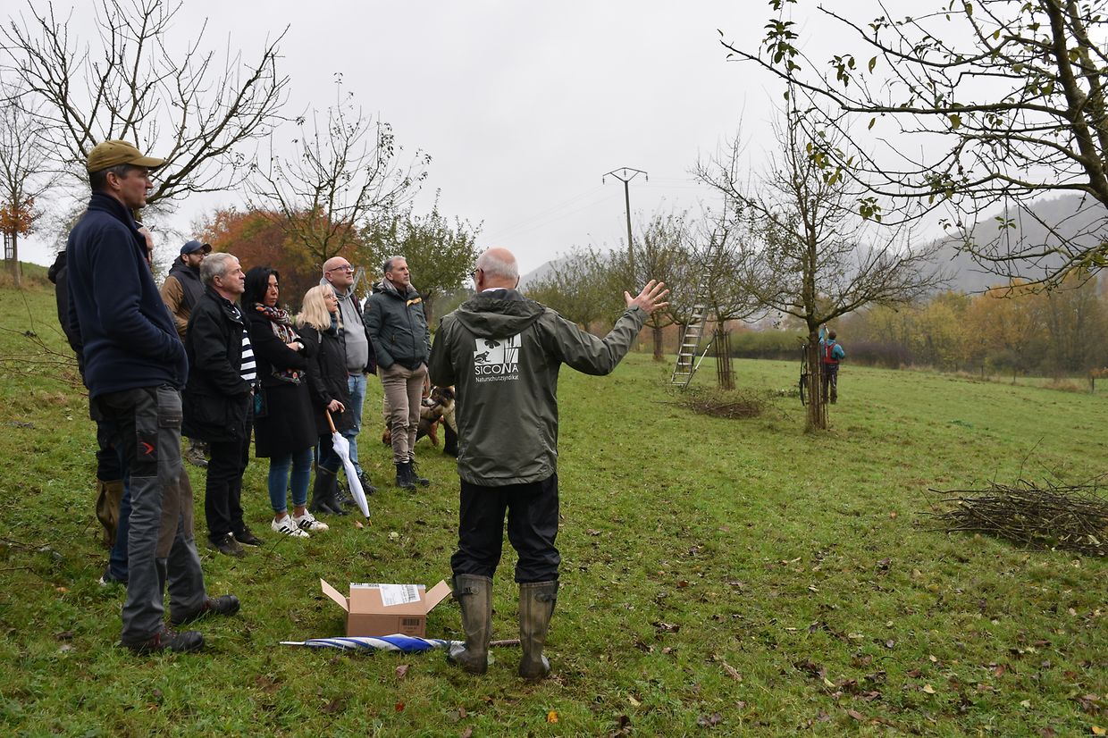 Wir haben die Streuobstwiese ënner dem Bromesbierg in der Gemeinde Kayl besichtigt. Hier stehen etwa 40 Obstbäume, die vor 15 Jahren im Rahmen von Schutzmaßnahmen zum Erhalt von Streuobstwiesen gepflanzt wurden. Es handelt sich neben Mirabellen und Kirschen handelt es sich vor allem um Äpfelsorten, wie Boskoop oder Triumph von Luxemburg.