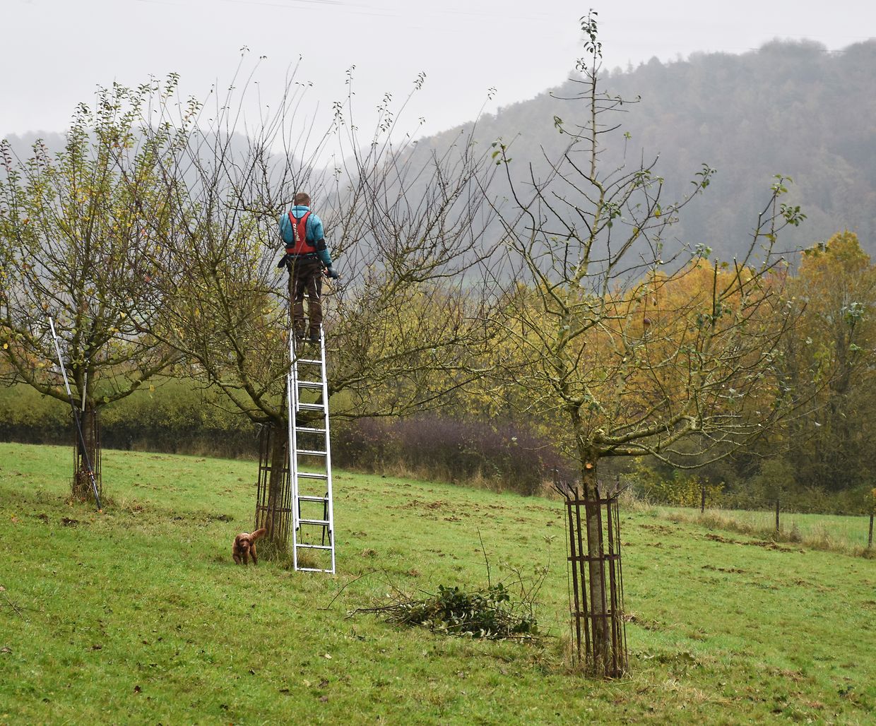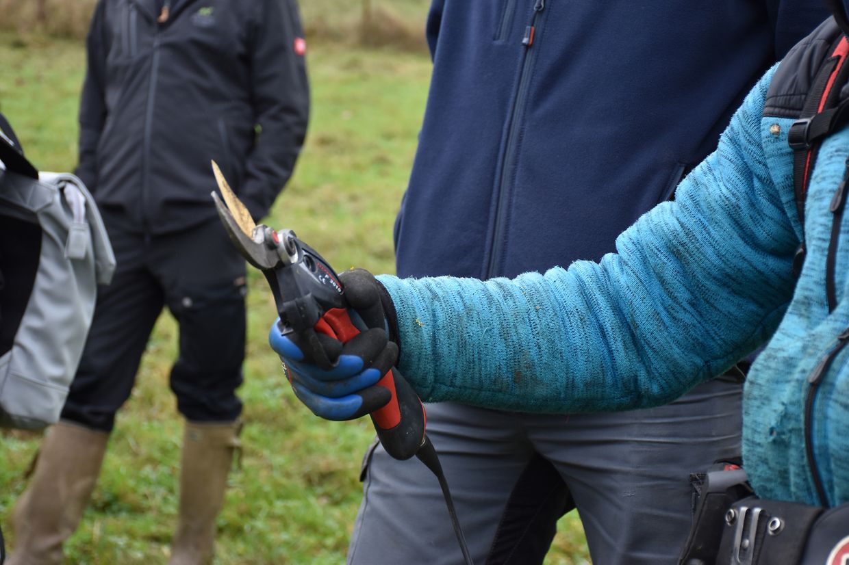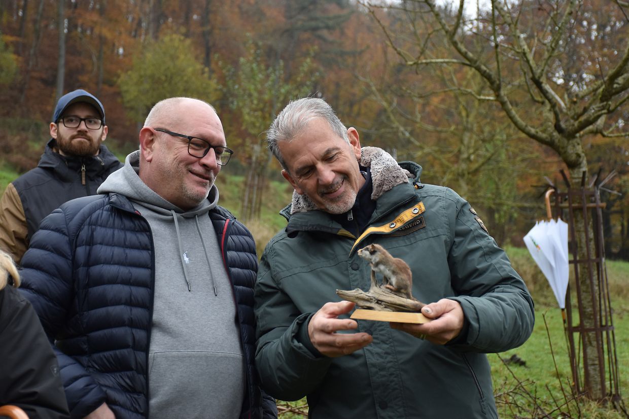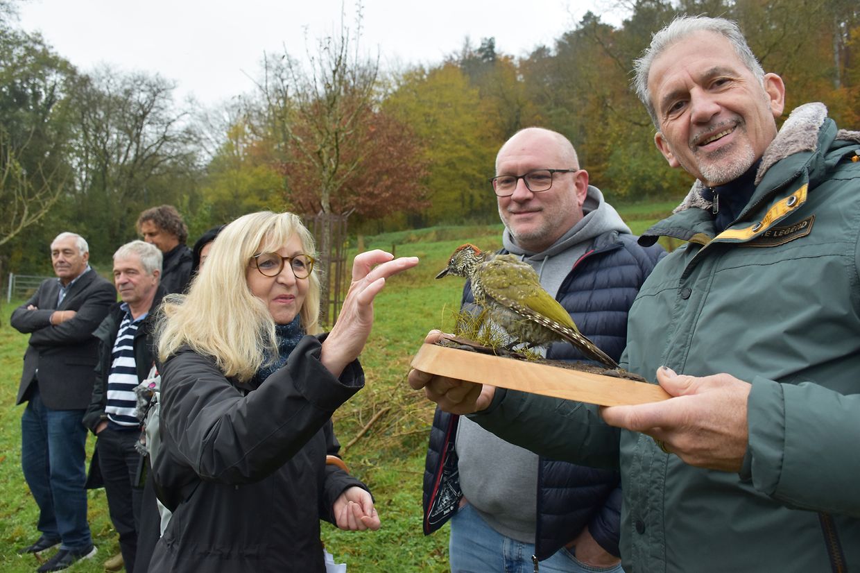 Wir haben die Streuobstwiese ënner dem Bromesbierg in der Gemeinde Kayl besichtigt. Hier stehen etwa 40 Obstbäume, die vor 15 Jahren im Rahmen von Schutzmaßnahmen zum Erhalt von Streuobstwiesen gepflanzt wurden. Es handelt sich neben Mirabellen und Kirschen handelt es sich vor allem um Äpfelsorten, wie Boskoop oder Triumph von Luxemburg.
