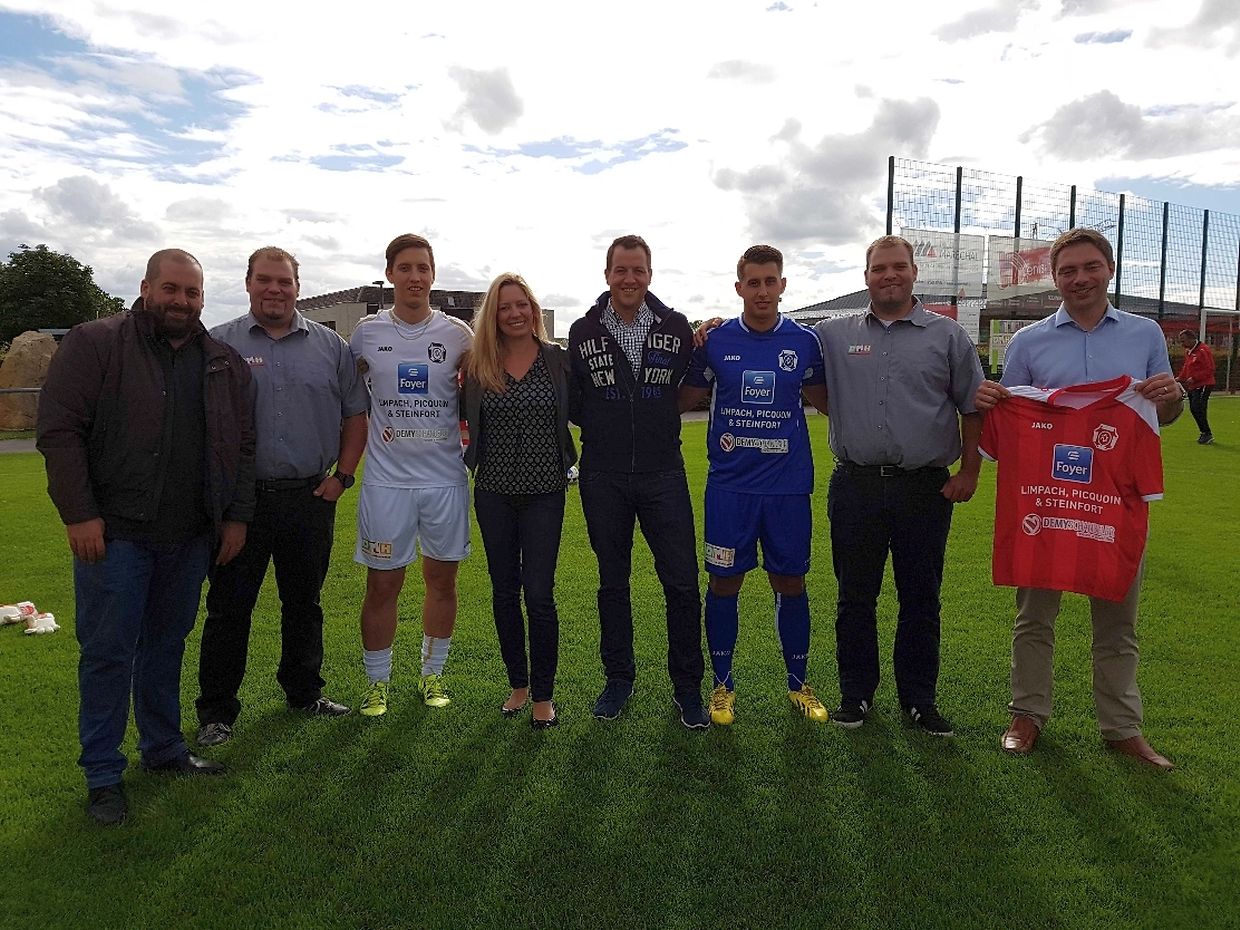 Der Dank richtete sich an die 5 Gönner deren Logos die Trikots in den nächsten 3 Jahren bestücken werden: Assurances Foyer Limpach, Picquoin & Steinfort aus Rodange, Weisgerber & Fils aus Senningerberg, De mobilen Handwierker aus Kehlen, Demy Schandeler aus Keispelt und Exigo S.A. aus Hamm.