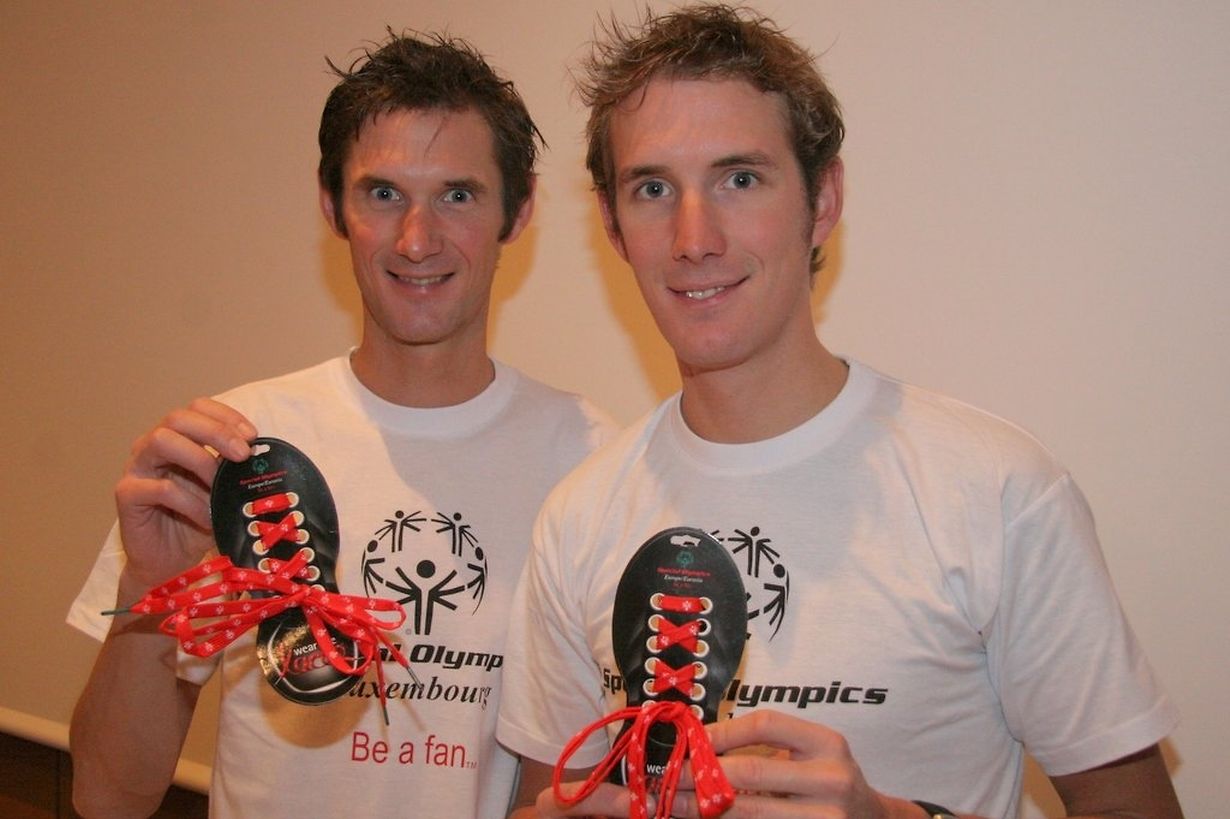 (asc) - Die Luxemburger Top-Sportler Andy und Fränk Schleck, Kim Kirchen und Laurent Didier überreichten am Dienstagabend in der „Coque“ auf Kirchberg zwei Schecks in Höhe von 12 000 Euro an „Special Olympics Luxemburg“, die Sportföderation für geistig behinderte Personen. Ab 2011 werden die beiden Schleck-Brüder auch als Botschafter für die Belange der Behindertenvereinigung werben.
