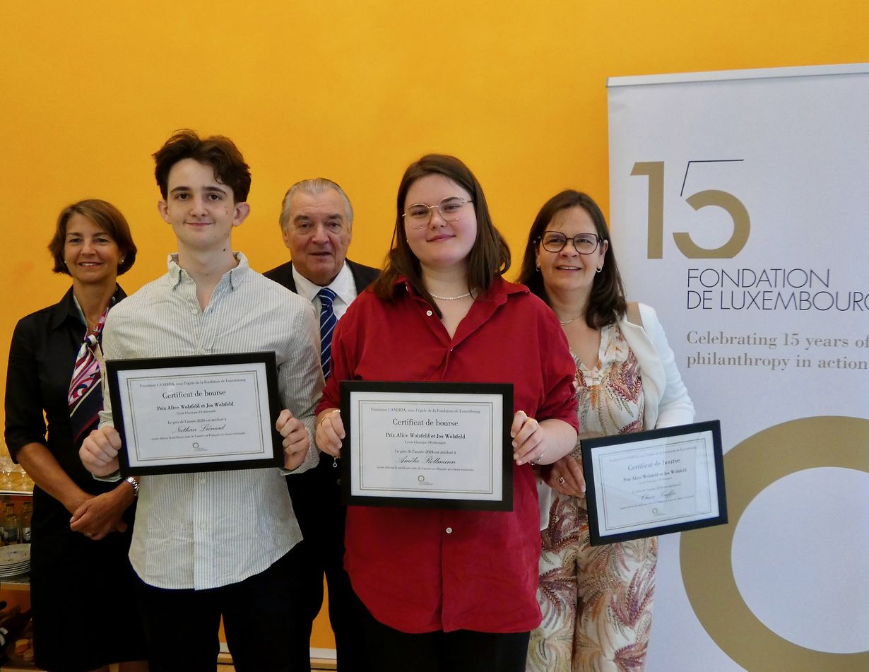 Chaque année, le Prix Alice Wolzfeld et Jos Wolzfeld est décerné à trois étudiants du Lycée Classique d’Echternach ayant reçu à la fois les meilleures notes sur leurs examens finaux et les meilleures notes dans les sujets de Latin, Français et Histoire. Cette année, les bourses ont été octroyées par le co-fondateur de la Fondation CANDIDA, Monsieur Henri Grethen, lors d’une cérémonie le 11 juillet 2024 dans les locaux de la Fondation de Luxembourg.