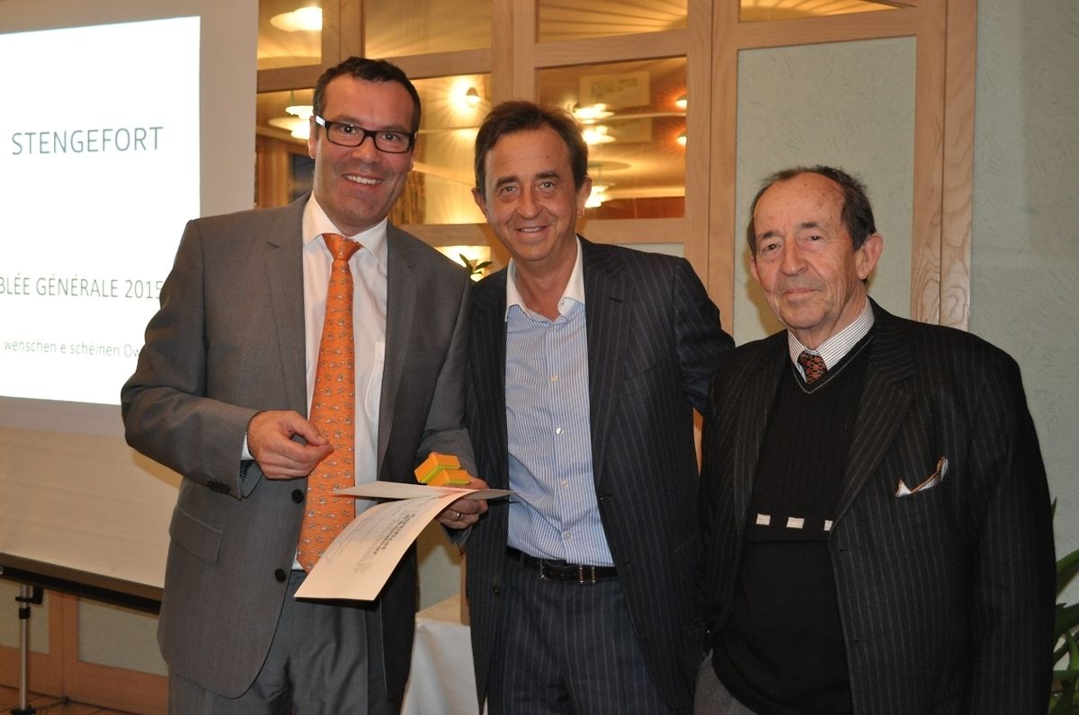 Aly Lemmer erhielt die goldene Anstecknadel für 50 Jahre Mitgliedschaft und erhielt aus den Händen von Präsident Fernando Ribeiro das Buch zu 100jährigen Jubiliäum der CSV.