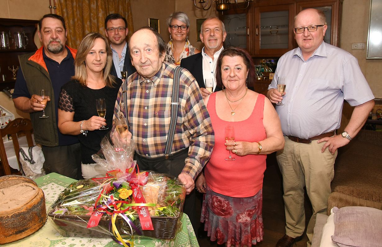 Klein- Elcheroth: Neulich konnte Jos Berg, geboren am 27. Mai 1932 in Klein- Elcheroth, als zweitjüngster Sohn von fünf Kindern der Eheleute Jos Berg und Mathilde Arendt auf 85 arbeitsreiche Jahre zurückblicken. Der Jubilar führte mit seiner Ehefrau und seinen beiden Kindern, den einheimischen Bauernbetrieb weiter. Nach dessen Auflösung machte der Eierhandel Spaß, den er von 1969 bis zu seinem Ruhestand im Jahre 1989 nachging. Seit seiner zweiten Ehe, die Jos Berg am 22. September 1986 mit Angela Forté aus Italien stammend, einging, genießen beide nun ihren Lebensabend in Klein- Elcheroth. Im Laufe der Zeit vergrößerte sich die Familie Berg um ein Enkelkind. Bürgermeister Jos Thill mit seinen Räten Marion Lepage- Beltgens, Raymond Jans, Aly Klein und Heng Rasqué gratulierten, Jos Berg zum 85. Wiegenfest und überreichten dem rüstigen Geburtstagskind ein Geschenkkorb mit den besten Wünschen aller Einwohner aus der Gemeinde Ell. Im Beisein der Familie genoss man die gute Geburtstagsstimmung. (CR )(FOTO: CHARLES REISER)