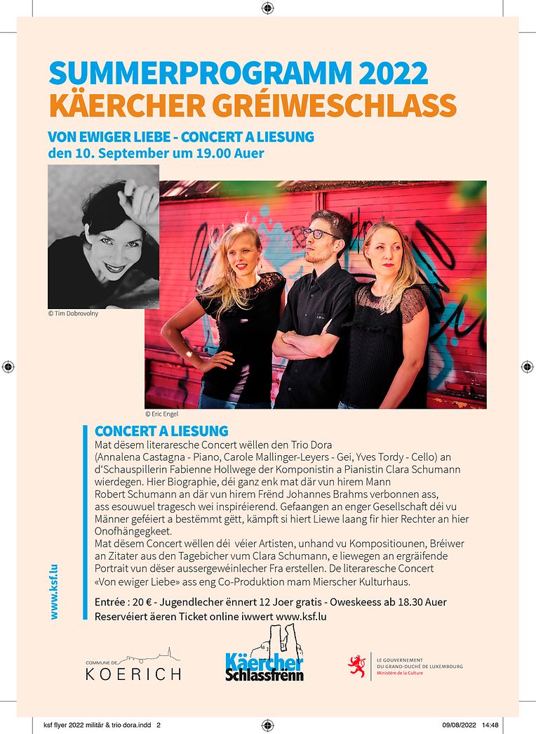 Den 10. September um 19.00 Auer am Gréiweschlass zu Käerch CONCERT A LIESUNG ennert dem Titel