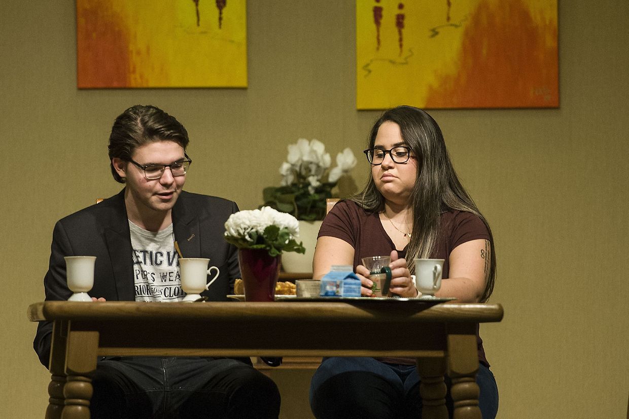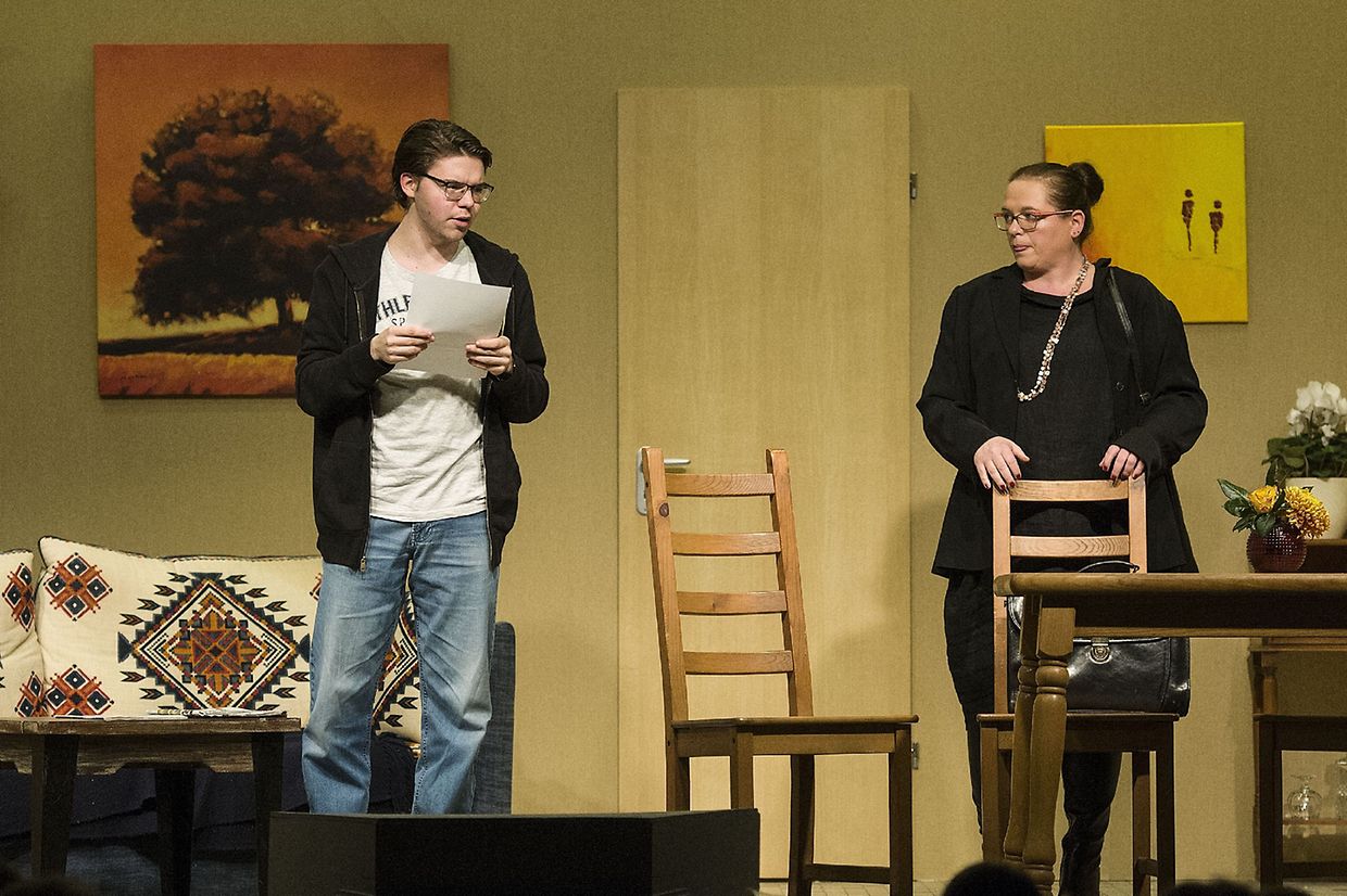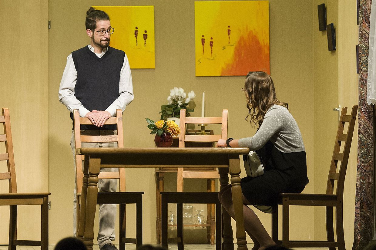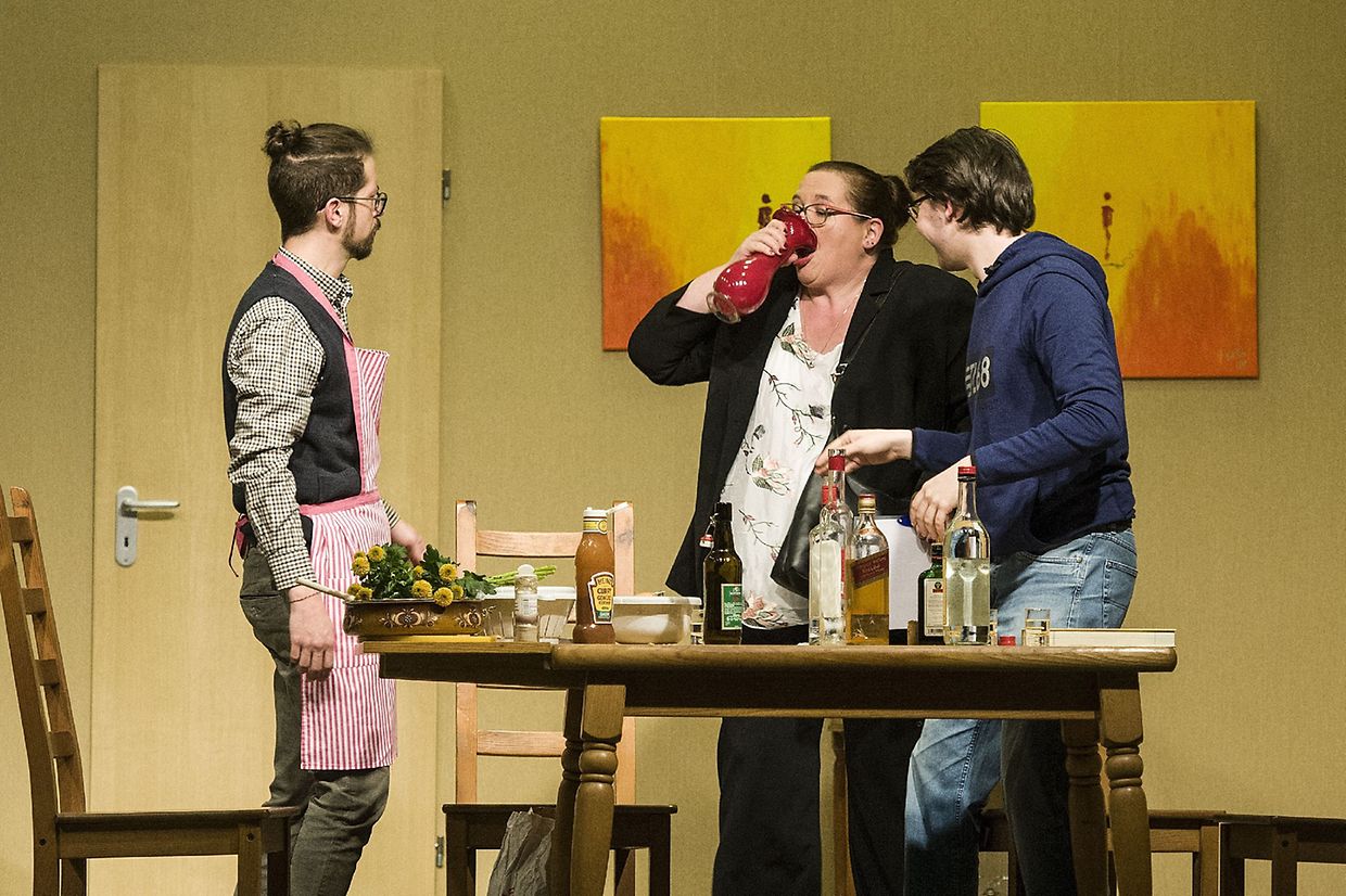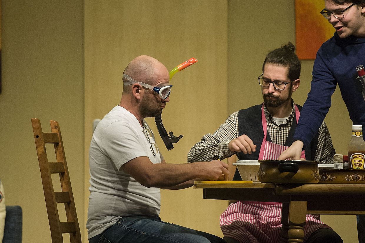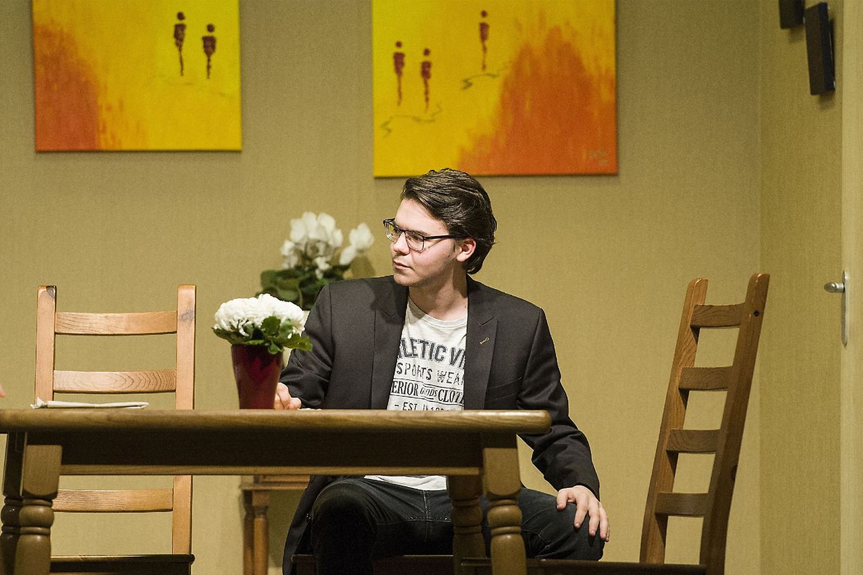 D'Publikum huet sech gutt amuséiert matt de Schicksalsgenossen, déi doheem erausgeflu sinn a sech hu mussen a miweléierten Zëmmer aquartéieren. Deen ee méi riicht eraus, de Buschauffer Charel (Nico Blitgen), do kennt et méi vun der Long op d'Zong an den Tristan (Yannick Hoffmann) leet seng Wierder éischter op d'Wo an ass méi op Harmonie beduecht. Dozou nach dën Här vum Haus, den Heng (Marcel Jost), dem ët och nit vill besser geet wéi denen zwéin Hausgäscht. Am Haus liewt nach d'Berta (Marie-Jeanne Gengler), d'Fra vum Haus, déi d'Box un huet an hier Duechter d'Liette (Jessica Fernandez), wat wees wat hatt wëll a sech gutt doduerch schléit. Dë Bréifdréier Jean Colis, genannt Stempel (Sven Jung) huet ën A op dat jongt Meedche geworf a muss matt allen Trickë géint der Mamm hiere Widerstand ukämpfen. Fir da schlussendlech alles an Opreegung zë brengen tauchen och nach dem Charel am Tristan hier Ex-Fraën Constance (Nessy Scherer) an Irina (Kamila Drouet) matt hierer Scheedungsaffekotin Vera Trenner (Sandy Stoltz) op. Ët gëtt ë schéinen Duergerneen an ën iwerraschendë Schluss.