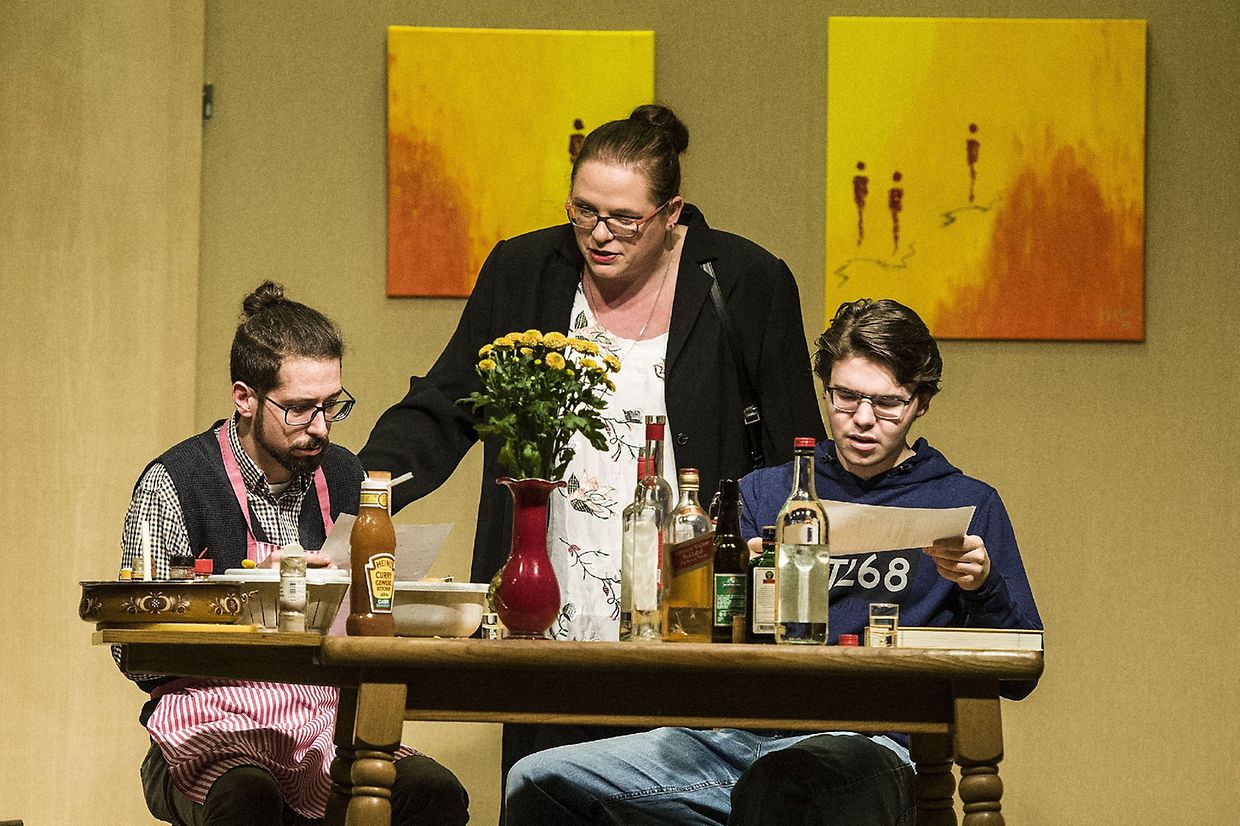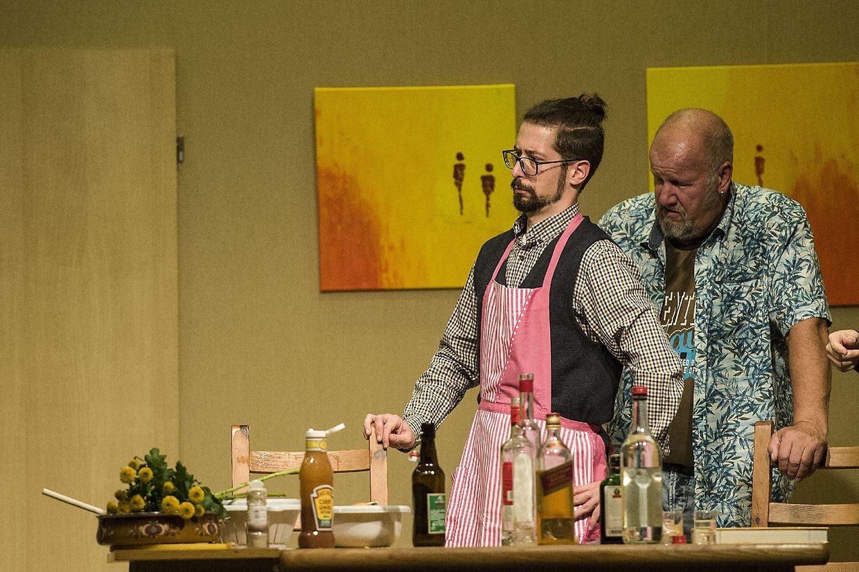 Eng gutt Hand hat eis Theater Equipe wéi si sech entscheet hunn, d'Stéck "Männer am Hierscht" vum Bernd Kietzke (iwwersat vum Romain Pierrot), op der Bühn am Festsall zu Käerch ze presentéieren.