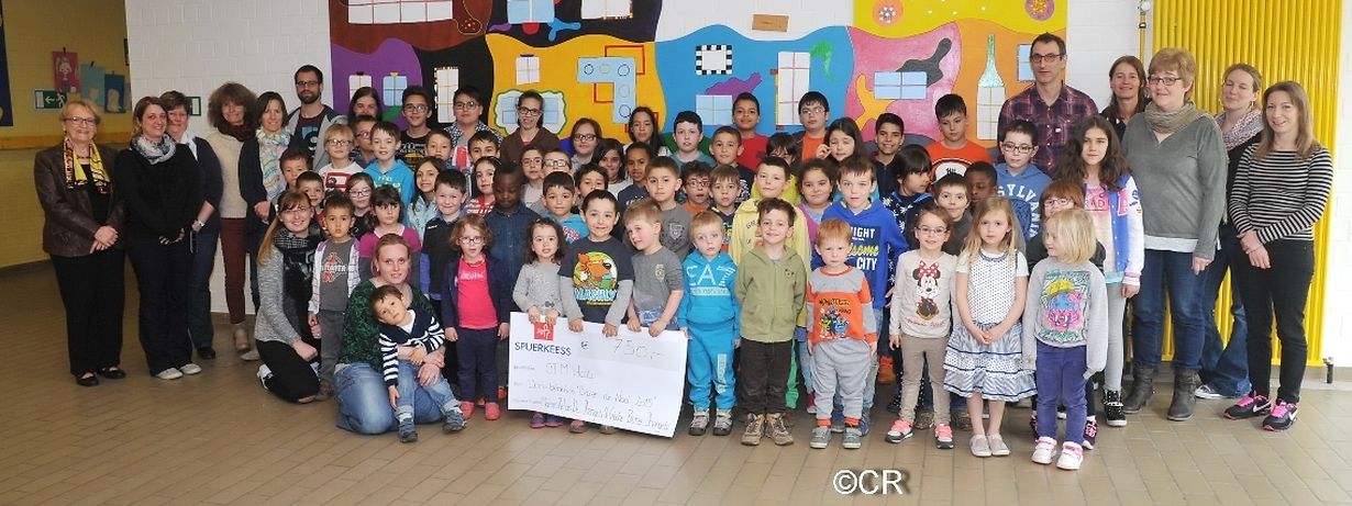 Koetschette: Im Dezember vergangenen Jahres organisierten die „ Crèche Butze Jhangeli“ zusammen mit der „ Maison relais de Jhangeli“ von der Zentralschule aus Koetschette einen Weihnachtsbasar, mit dem Ziel den Erlös einem guten Zweck zukommen zu lassen. So überreichten die Kinder mit ihren Erziehern und in Gegenwart von Schöffin Marie- Anne Thommes neulich einen Scheck über 750 Euro an Dan Kayser, der seit fünf Jahren als ehrenamtlicher Mitarbeiter von verschiedenen Projekten bei OTM- Haïti engagiert ist. Dankend nahm Dan Kayser den Scheck in Empfang und erklärte dass diese Spende für das bevorstehende Projekt zur Strom- und Trinkwasser Versorgung sowie in den Bau von Schulen im betroffenen Erdbebengebiet auf Haiti fliesen wird. (TEXT/FOTO: CHARLES REISER)