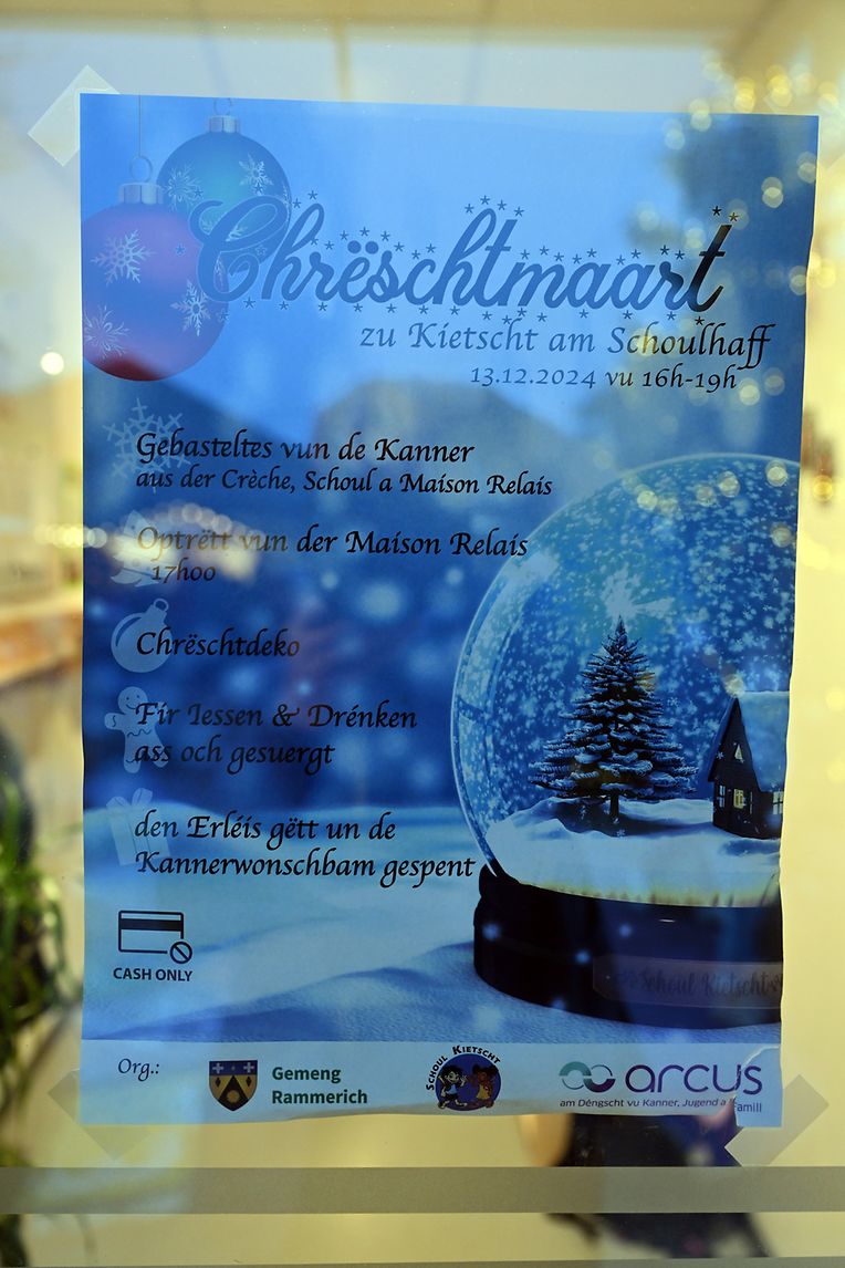 Wi schon zënter Joeren hun d'Maison Relais, d'Crèche an d'Schoul aus der Kietschter Zentralschoul op hiren traditionellen Chrëscht maart an de Schoulhaff agelueden. Bei wanterlichen Temperaturen waren trotzdem vill Familien komm fir di flott Saachen ze bewonneren an och fir di kommend Feierdeeg ze kaafen. Mat Iessen a waarmen Gedrënks war fier jidderreen eppes do a konnt e puer agreabel Momenter genéissen. Och de flotte Gesangconcert vun de Kanner huet hiren Elteren och ganz gut gefall. (Fotoen: Charel Reiser).