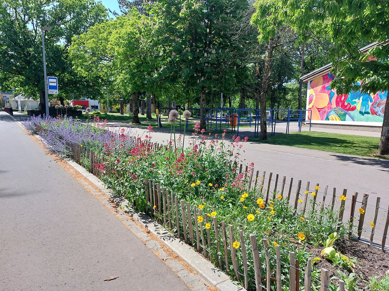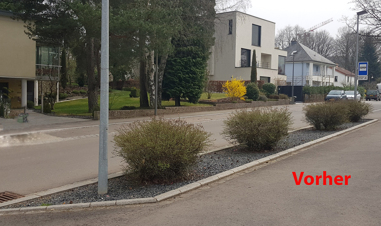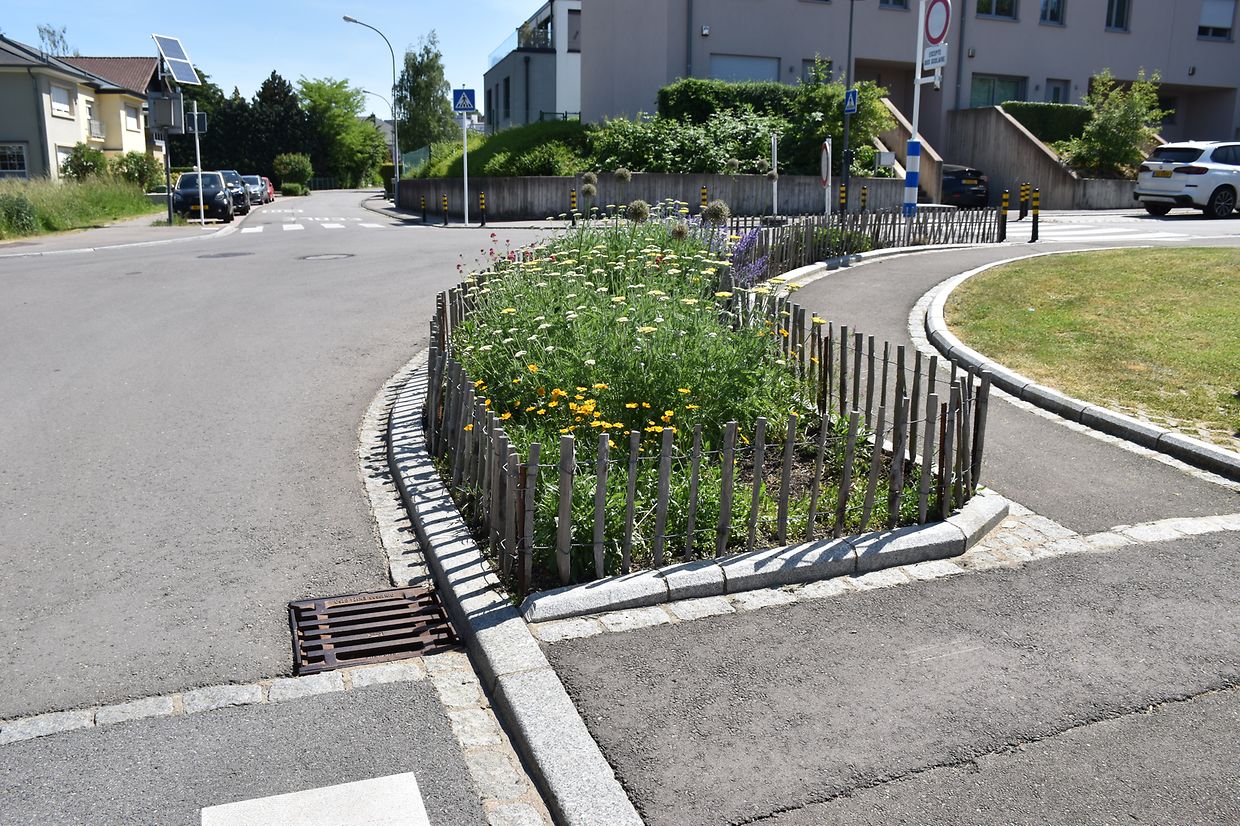 Im Frühjahr 2022 wurden in Zusammenarbeit mit der Gemeinde Kopstal drei triste Schotterinseln in zwei farbenfrohe Zierstaudenbeete und einen bunten Saum mit heimischen Wildpflanzen umgewandelt. Für die Anlage wurde der ehemalige Schotter aus den Beeten entfernt und durch einen mageren Boden ersetzt. Die Beete wurden anschließend mit Zierstauden aus biologischem Anbau sowie zahlreichen Blumenzwiebeln bepflanzt. Hierfür wurden besonders langblühende und nektarreiche Stauden ausgewählt, die das ganze Jahr über zahlreiche Insekten anlocken und für einen bunten Blühaspekt sorgen.