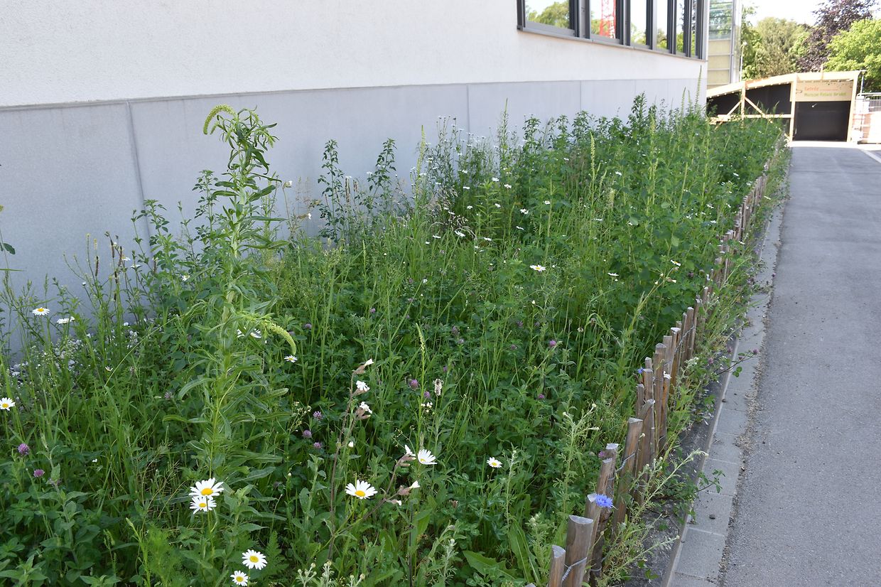 Für die Anlage des Saums, welcher sich 28 m entlang des Schulgebäudes erstreckt, wurde zertifiziertes heimisches Wildpflanzensaatgut „Wëllpanzesom Lëtzebuerg“ verwendet. Die Mischung LUX-Bunter Saum- und Schmetterlingspflanzen enthält nicht nur zahlreiche heimische Nektarquellen für Schmetterlinge und andere Insekten, sondern auch die wichtigen Nahrungspflanzen für deren Larven. Eine insektenfreundliche, extensive Pflege der naturnahen Grünflächen sorgt nun für eine ungestörte Entwicklung der Bestäuber. Des Weiteren schützt ein Staketenzaun die Beete vor ungebetenen Gästen.