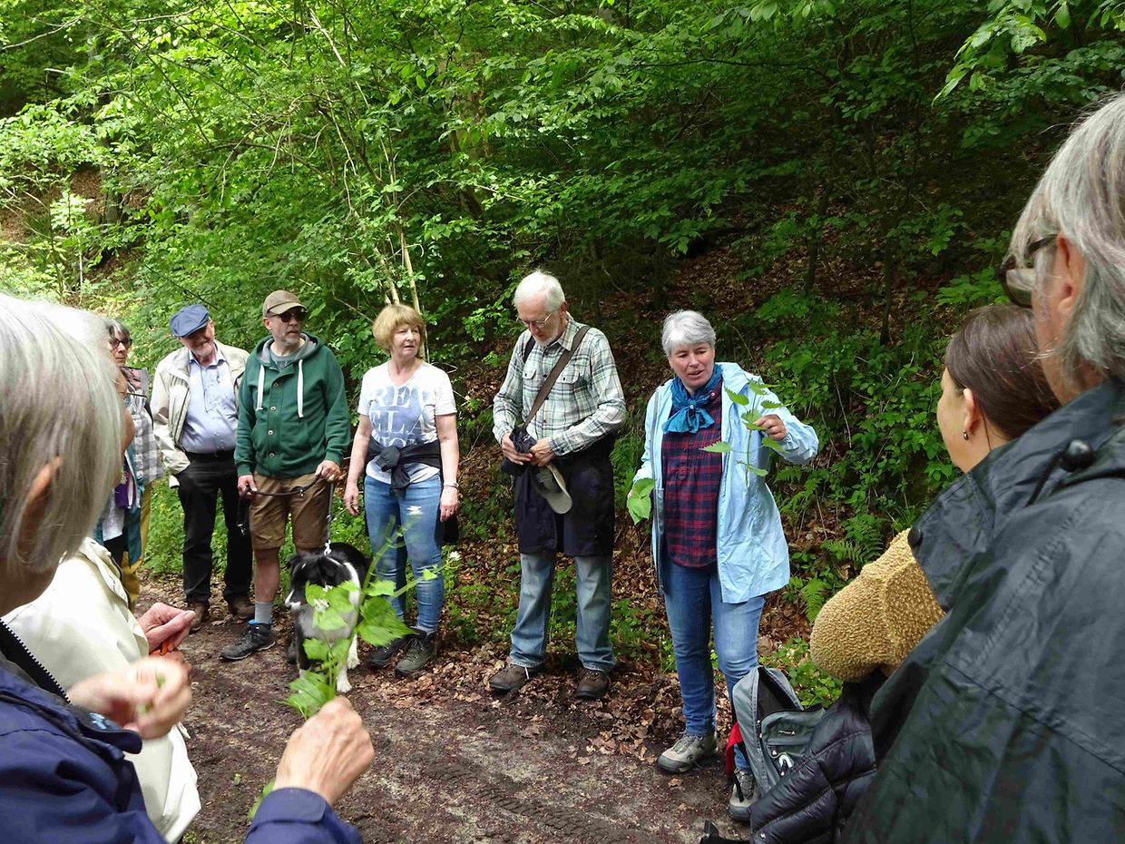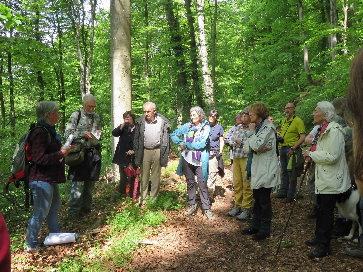 Unterwegs machten Claudine Junck (SICONA) und Jean Weiss (Koplescht – fréier an hott) auf zahlreiche Pflanzenarten aufmerksam und wiesen eindringlich darauf hin, welche Konsequenzen der bereits abzusehende Klimawandel auf die heimischen Laubwälder haben wird. Dabei wurden insbesondere Fragen zur passenden Forstwirtschaft aufgeworfen.
