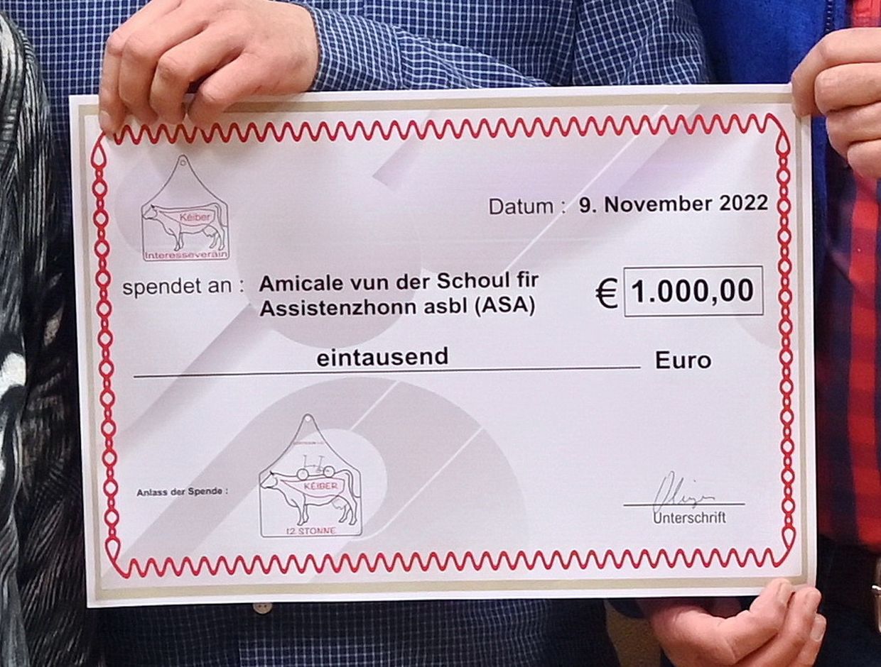 1 000 Euro der Amicale vun der Schoul fir Assistenzhonn iwergin