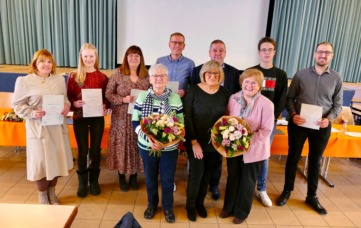Nachdem der Aktivitätsbericht von Marc Orban vorgetragen wurde und Marc Muller einen präzisen Einblick in die Zahlen der Kasse gewährte, wurden 8 Mitglieder geehrt. Für 10 Jahre Treue im Verein bekamen Hannah Enders, Elena Thorn und Olivier Conter eine Medaille, für 20 Jahre Alexa Michels, Pascale Wolff-Kolbusch sowie Jérôme Krux, für 30 Jahre Linda Reuter und Marc Muller. Nachdem Bürgermeister Michel Wolter zusammen mit Frau Adele Donven-Rossetti von der UGDA die Diplome und Medaillen überreicht hatte, lobte er die gute Arbeit des Vereins, vor allem die Motivation, dass der Verein weiterhin nach vorne schaut und seine Aktivitäten weiterführt. Auch für ihn ist der anstehende Besuch der Gaflenzer Freunde von größter Priorität, und er bedankte sich beim Verein für die Zusammenarbeit.
