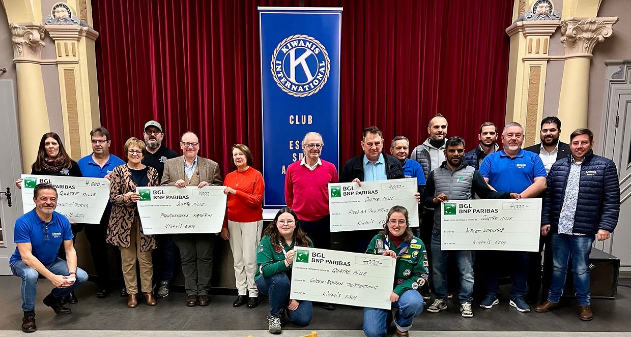 Am Kader vun enger klenger Feierstonn huet de KIWANIS Esch/Uelzecht viru kuerzem an der Poppespënnchen zu Lasauvage 5 chéquen vu jeeweils 4.000 € u verschidden Associatiounen iwwerreecht.