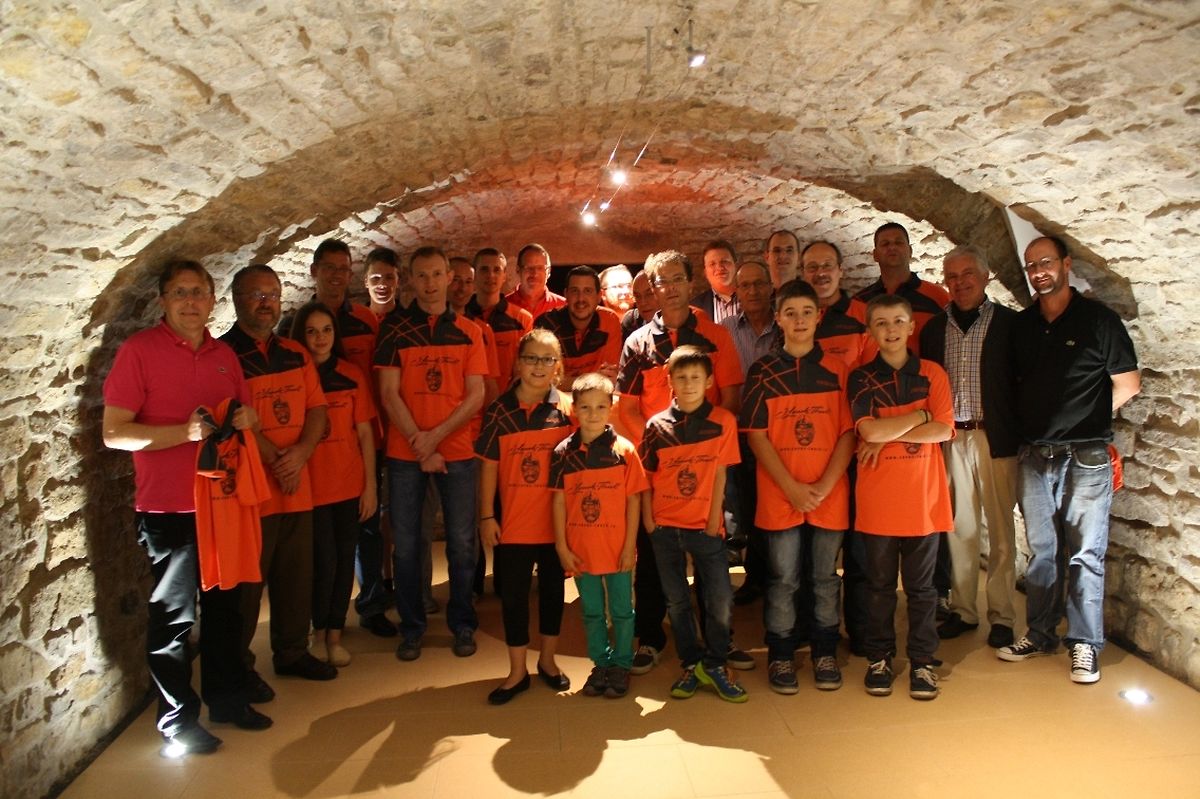 Die Tischtennisspieler des DT Lenneng treten ab der laufenden Saison mit neuen Trikots auf. Am Freitagabend wurden die Spielkleidung den anwesenden Akteuren in der Weinstube der Caves Jean Leuck-Thull in Lenningen feierlich überreicht. Eine Woche vor dem Saisonstart trafen sich die Sportler somit zu einem gemütlichen Abend, der von Präsident Jos Bellot mit einer kurzen Ansprache eröffnet wurde. Er bedankte sich für das Engagement der beiden Hauptsponsoren Voyages Emile Weber und Caves Jean Leuck-Thull, die beide in der Gemeinde ihr Gewerbe betreiben. Das Bus- und Reiseunternehmen aus Canach ist schon über zehn Jahren ein zuverlässiger Hauptsponsor des DT Lenneng. Die Caves Jean Leuck-Thull hat Ende des vergangenen Jahres ihre Weinstube in der Rue de Canach eröffnet und ist nun erstmals Hauptsponsor des Tischtennis- und Theatervereins. Die Trikots in Orange und Anthrazit werden selbstverständlich am ersten Spieltag eingesetzt, wenn die sechs „Seniors“-Mannschaften des DT Lenneng die neue Saison in Canach eröffnen werden.