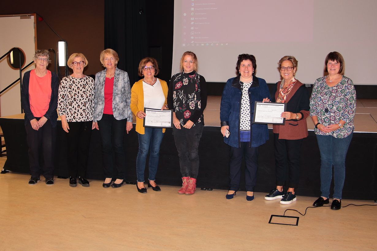 No der Wanderung waren all d’Memberen invitéiert fir un der Scheckiwwerreechung deelzehuelen. Trotz Pandemie haten d’Fraen a Mammen am Joer 2020 duerch hier Präsens um Frëschmaart e schéine Bénéfice gemaach. Esou konnten si jeweils 5000 € un « Femmes en Détresse » an un « Médecins du Monde » iwwerreechen. Di zwee Vertrieder hunn hier jeeweils Organisatioun virgestallt. Duerno konnt een sech um Kéisbuffet zerwéieren an bei enger Taass Kaffi an engem Stéck Taart den Owend auskléngen loossen.
