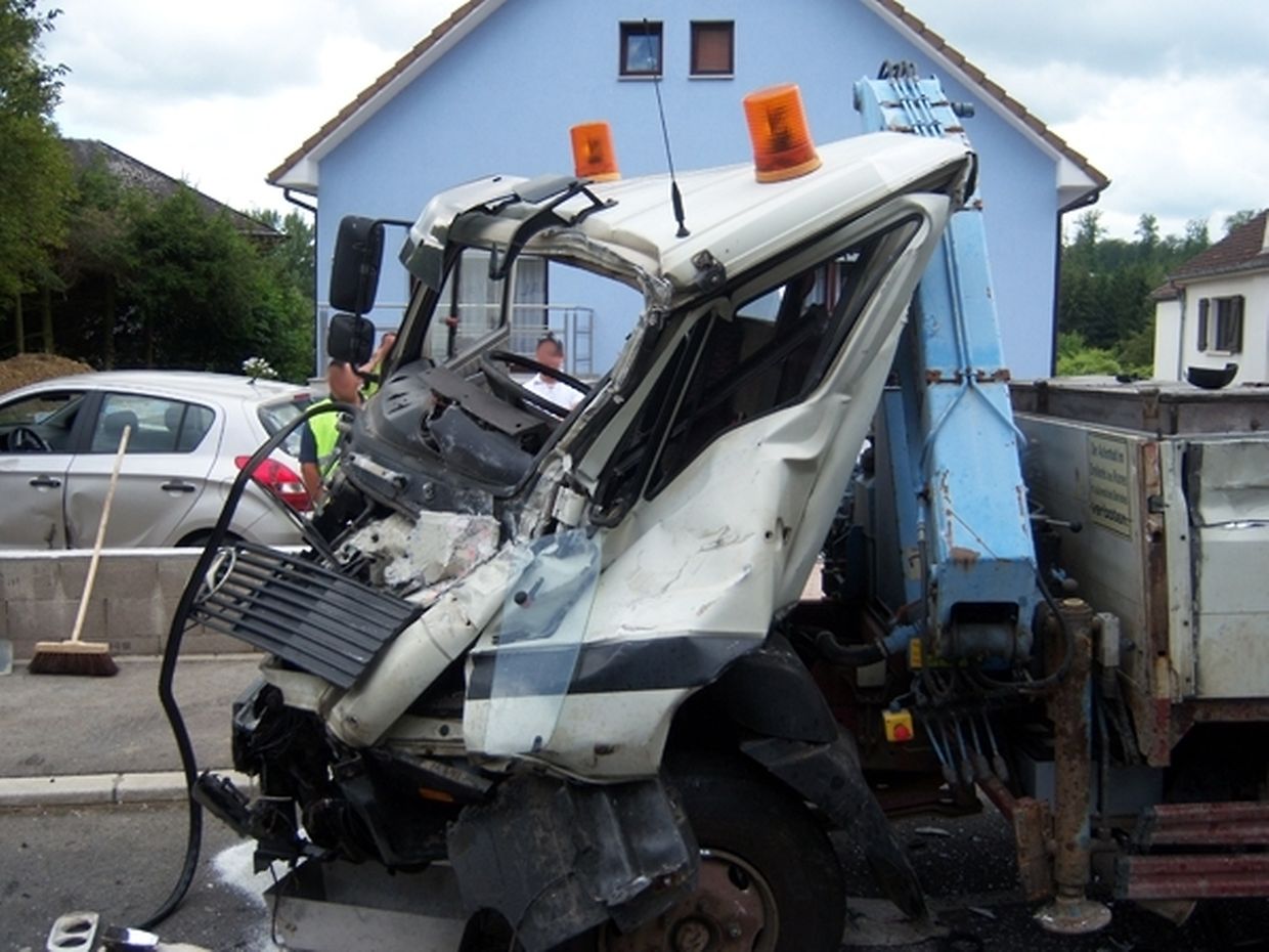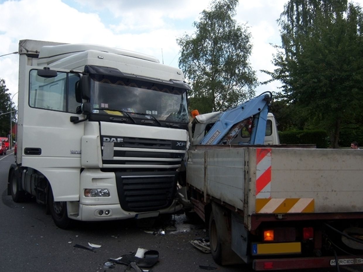 Am 11.Juli ereignete sich zur Mittagszeit ein schwerer Verkehrsunfall in der route d`Esch in Leudelingen. Ein LKW war frontal mit einem parkenden Lieferwagen, in dem sich noch eine Person befand, kollidiert. Während der Fahrer des Lieferwagens Verletzungen davon trug, erlitt der LKW-Fahrer nur einen Schock. Beide mussten ins Krankenhaus gebracht werden, der Lieferwagenfahrer wurde dabei von einem Notarzt versorgt. Im Einsatz war neben dem Einsatzzentrum Bettemburg mit HTLF, GW, RTW1 und RTW2 auch die Feuerwehr aus Leudelingen sowie der SAMU Esch und die Polizei.