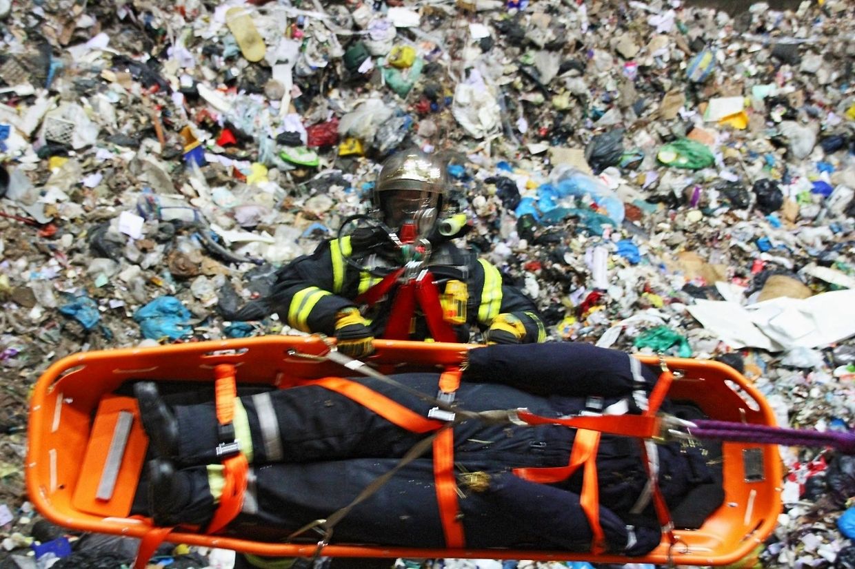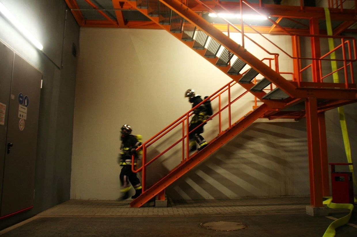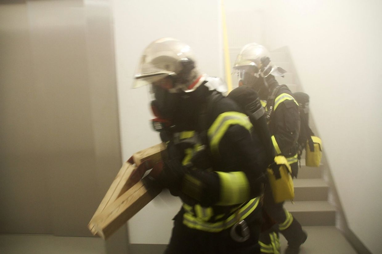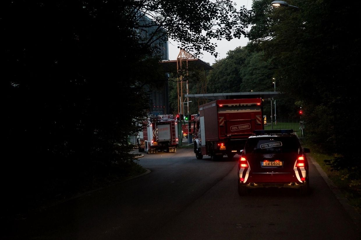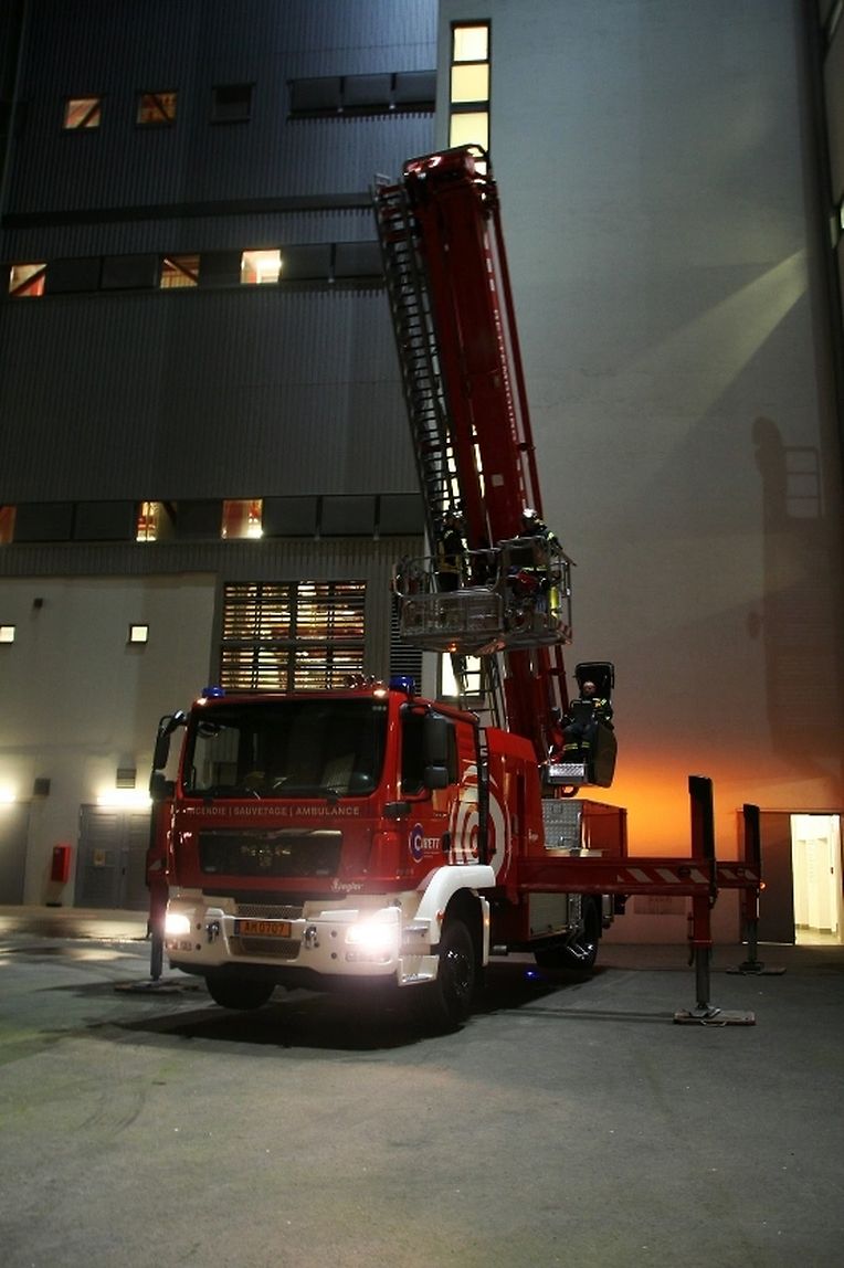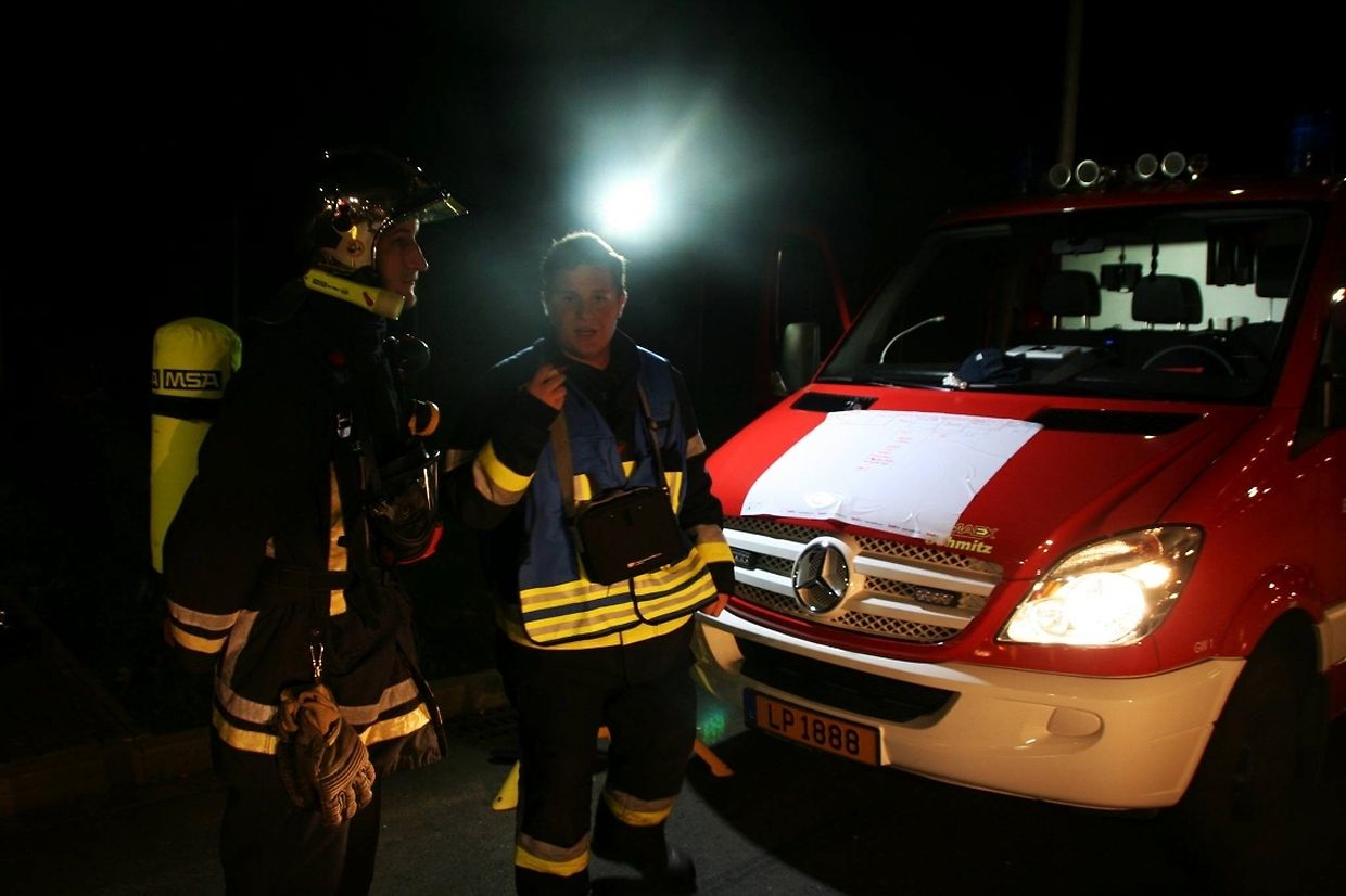 Gegen 19:40 Uhr wurden die Feuerwehren aus Leudelingen und Bettemburg gleichzeitig mit der Meldung „AG Feier – SIDOR Leudelange – Brand im Müllbunker“ alarmiert. Die Feuerwehr Leudelingen, welche als Erster vor Ort war, übernahm die erste Erkundung mit Hilfe der am Eingang bereitgestellten Notfallplänen des Betriebs. Schnell war klar dass es sich hierbei um keinen gewöhnlichen Einsatz handeln würde: Das Treppenhaus war auf Grund des Brandes bis auf eine Höhe von 23m vollständig verraucht, 3 Personen wurden vermisst, weitere Arbeiter waren im Kontrollzentrum vom Rauch eingeschlossen worden. Unter schwerem Atemschutz drangen die Einsatzkräfte in den verrauchten Bereich vor, um nach möglichen Opfern zu suchen. Diese konnten sehr schnell im Treppenhaus, sowie im oberen Bereich des Müllbunkers lokalisiert werden. Ein weiteres Opfer war in den Bunker gestürzt und befand sich in etwa 10m Tiefe. Der Atemschutztrupp lokalisierte die Arbeiter des Kontrollzentrums. Da diese aber zum aktuellen Zeitpunkt nicht in unmittelbarer Gefahr waren, hatten die verletzten Arbeiter Vorrang. Während die Rettung der beiden erstgenannten Opfer schnell durch Atemschutztrupps über das Treppenhaus erfolgen konnte, gestaltete sich die Rettung des abgestürzten Arbeiter komplizierter. Mit Hilfe des Teleskopmastfahrzeuges der Feuerwehr Bettemburg wurde ein mit schwerem Atemschutz ausgerüsteter Feuerwehrmann zu dem Verunfallten abgeseilt. Das Opfer wurde in einer Korbschleiftrage fixiert und mittels mehreren Sicherheitsleinen von den Einsatzkräften aus dem Bereich gerettet. Dabei galt es sowohl das Opfer wie auch alle beteiligten Einsatzkräfte während der gesamten Arbeitsdauer im Gefahrenbereich zu sichern.
