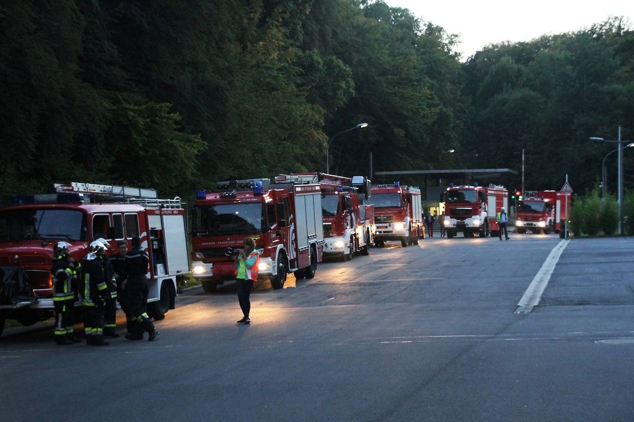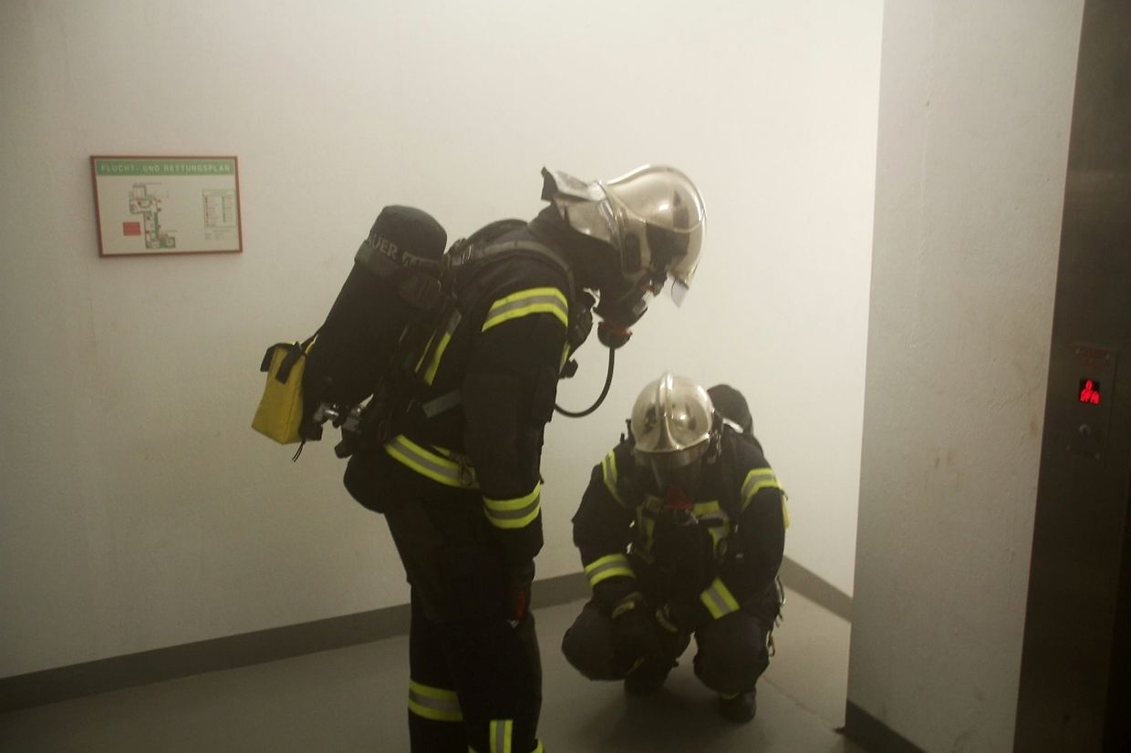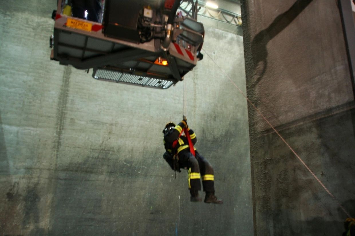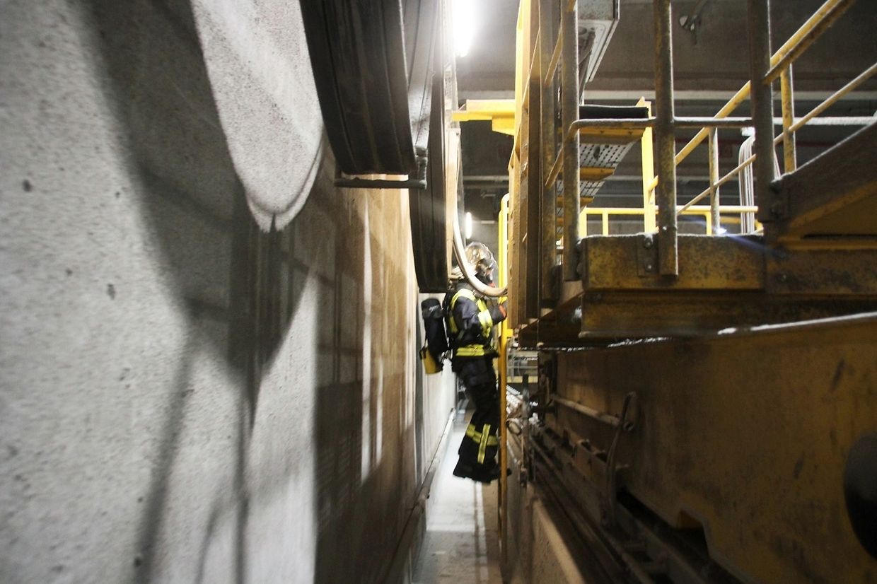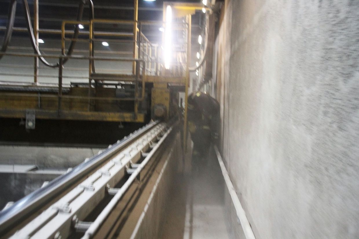 Anschließend mussten die Arbeiter des Kontrollzentrums mittels Teleskopmastfahrzeug aus einer Höhe von etwa 23m gerettet werden. Da dieser Bereich durch eine Brandschutztür vom Rauch abgeschirmt war, konnten diese ohne größeren Zeitdruck evakuiert werden.