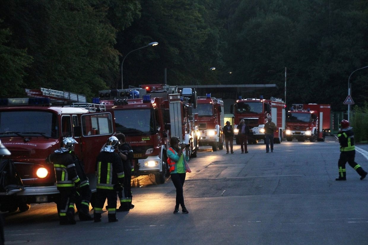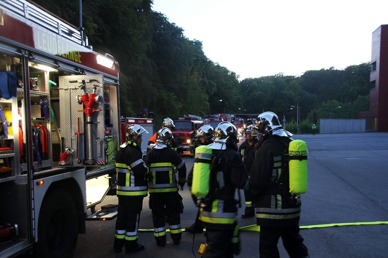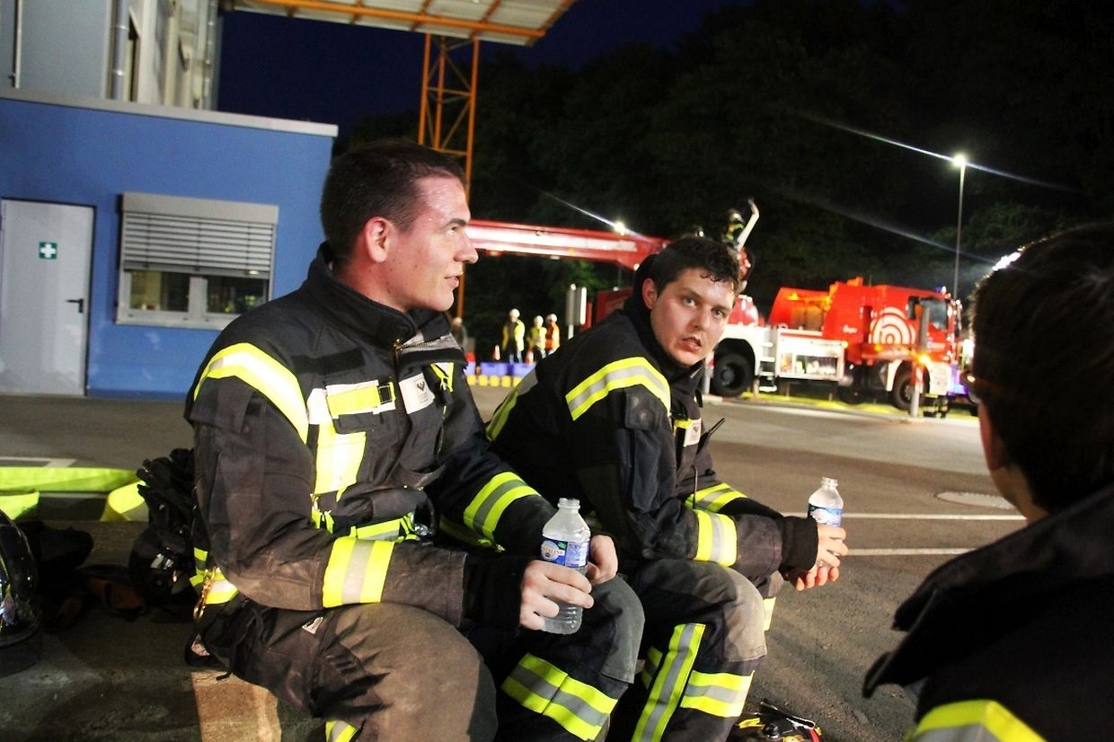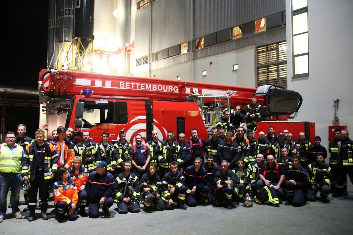 Der Übung wohnten lokale Politiker sowie Vertreter des Gemeindesyndikates SIDOR und der Betreibergesellschaft EEWL bei. Rund 50 Einsatzkräfte mit 12 Fahrzeugen der Feuerwehren aus Leudelingen und Bettemburg nahmen an der Übung teil.