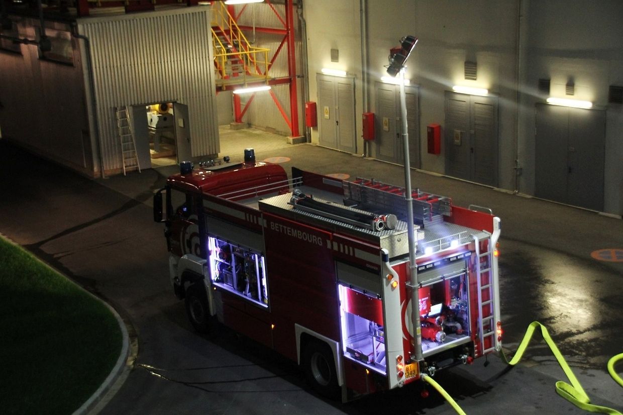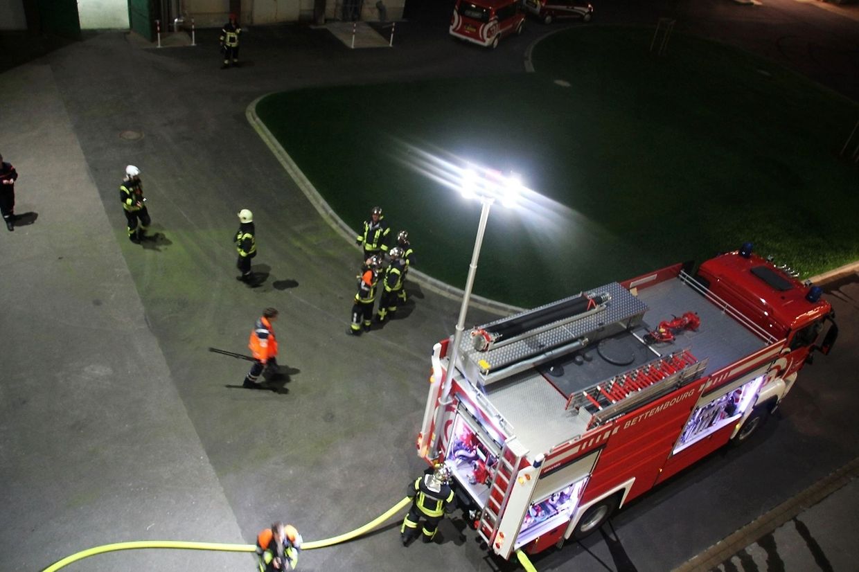 Am Dienstagabend fand anlässlich der wöchentlichen Fortbildung der Feuerwehren aus Bettemburg und Leudelingen eine großangelegte Einsatzübung unter der Aufsicht von Sauvetage Ausbilder Serge Muller, sowie Tom Barnig auf dem Gelände der Müllverbrennungsanlage SIDOR statt. Ziel dieser Übung war es die Einsatzkräfte mit dem ungewohnten Gelände vertraut zu machen, um im Ernstfall schnell und sicher handeln zu können. Da die gesamte Anlage mit modernsten Lösch- und Sicherheitstechniken ausgestattet ist, kam es in der Vergangenheit nur sehr selten zu Zwischenfällen. Trotzdem gilt es auf den Ernstfall vorbereitet zu sein, um dadurch wertvolle Zeit gewinnen zu können.