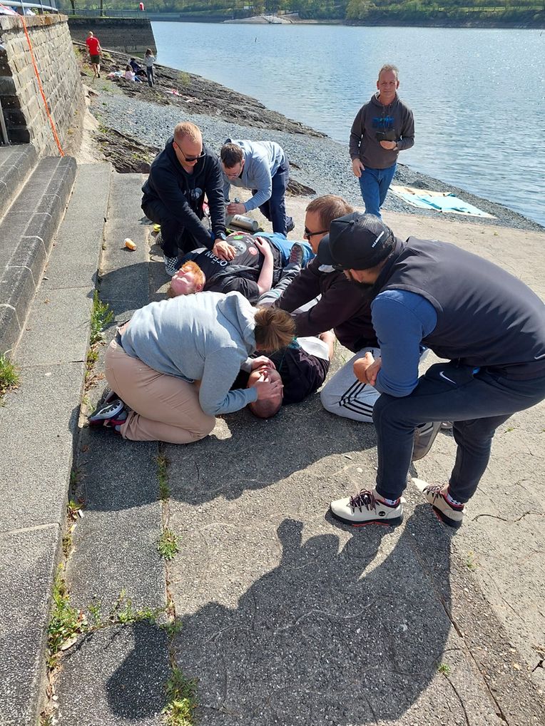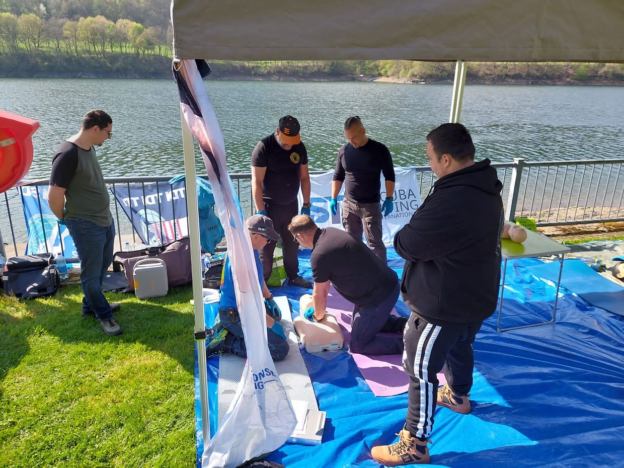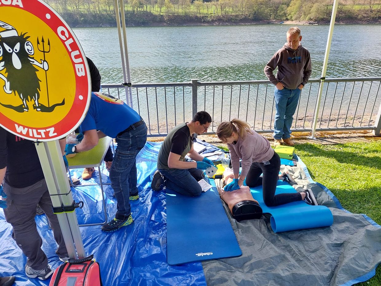 Taucherinnen und Taucher des Sub Aqua Club Wiltz sowie der Tauchschule Actionsport Perl nahmen aktiv an den Workshops teil, die den erfahrenen Ausbildern Sebastien Wilem, Dietmar Koszeswki und Alain Margreve geleitet wurden. Auf dem Programm standen unter anderem CPR- und BLS-Training, die Anwendung von Sauerstoff in Notfallsituationen und Tauchunfällen sowie gezielte Übungen zur Rettung verunfallter Taucher. Ein besonderes Highlight war das praxisnahe Training direkt am Wasser, bei dem realistische Rettungsszenarien durchgespielt wurden.