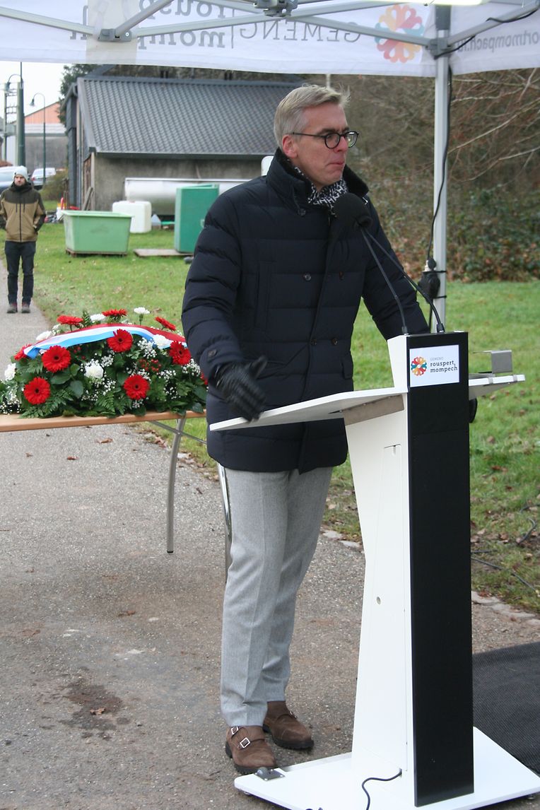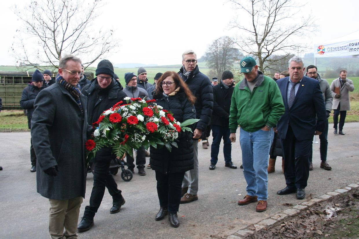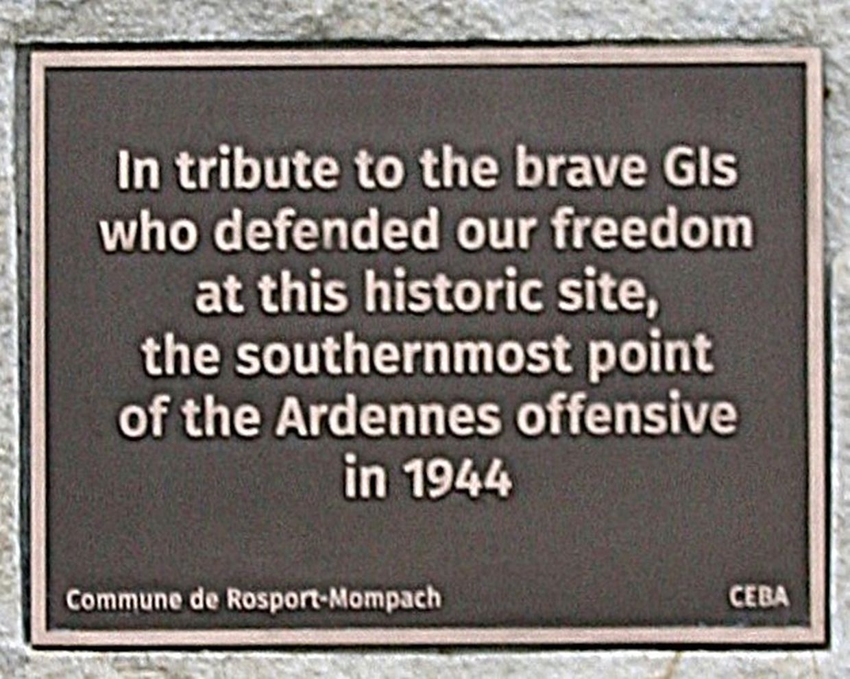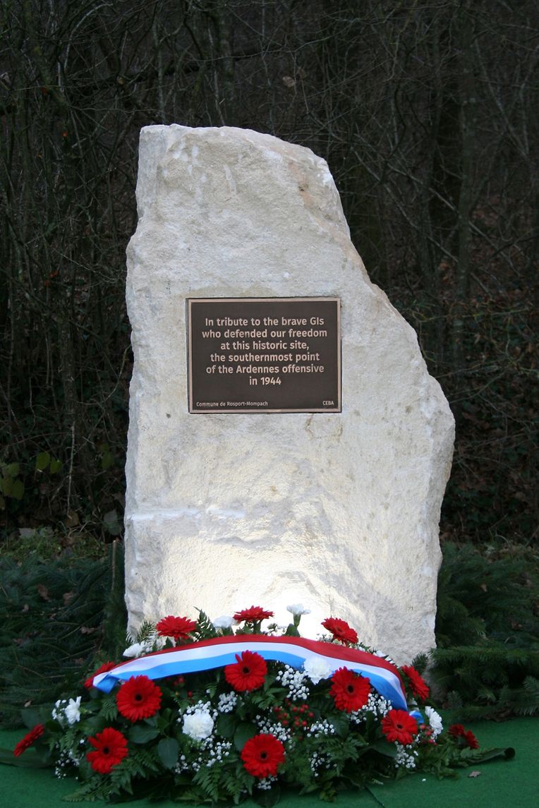 Dëser Deeg gouf hei a Presenz vum Innenminister Léon Gloden a vun den Deputéierten Octavie Modert, Stéphanie Weydert, Alexandra Schoos a Ricardo Marques e Gedenksteen ageweit, deen op dëse markante Punkt vum „Battle of the Bulge” hiweist. Den CEBA-President Erny Kohn huet a senger Usprooch duergeluecht, wéi den 18. Dezember 1944 de Virstouss vun Unitéite vun der 212. Volksgrenadierdivision vun der Wehrmacht op dëser Plaz mat vill Asaz a Courage vun den Zaldote vun der 4. US-Infanteriedivisioun (Cannon Company / 12. Regiment) no schwéiere Gefechter ofgewiert konnt ginn.