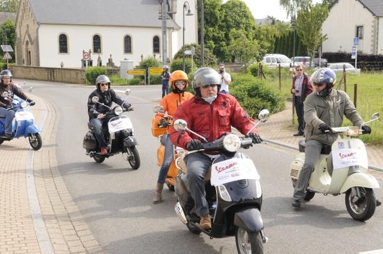 Am Samstag hatte die Vereinigung „Macchina d’Epoca“ Freunde historischer italienischer Autos und Motorräder zur vierten Auflage von „Vespa on tour“ eingeladen. Beim Café Muller in Limpach hatten sich knapp 50 Vespa-Besitzer eingefunden, um eine 75 Kilometer lange Tour über Land zu starten. Diese ging von Limpach über Zolver, Differdingen Richtung Frankreich, wo Hussigny, Villers Montagne, Laix, Beauvillers und Tressange angefahren wurden. Nach einem gemeinsamen Mittagessen im Restaurant „Gigi l’Amoroso“ in Düdelingen stand am Nachmittag eine weitere Tour von etwa 60 Kilometern für die Vespa-Fahrer über Schifflingen, Foetz, Monnerich, Fingig, Kreuzerbuch, Garnich, Steinfort, nach Schouweiler auf dem Programm. Im Restaurant „Osteria del Ponte“ fand das Treffen, das in bester Stimmung und guter Laune stattfand, bei einem Abendessen seinen Abschluss. Da alle ein gutdurchdachtes und bestens organisiertes Treffen erlebten, freuen sich die Teilnehmer bereits auf die fünfte Auflage von „Vespa on Tour“ 2014.