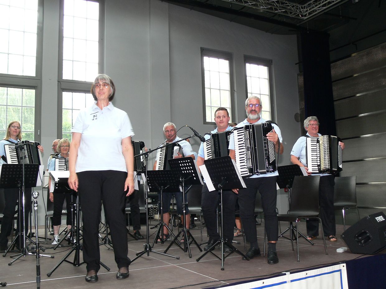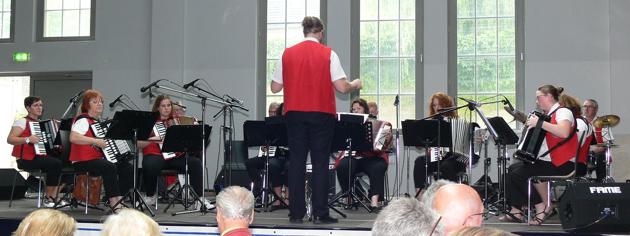 Den “Harmonikaverein Salzstetten-Tumlingen” aus dem Schwarzwald (D), mat deem d’SMAL Kontakt krut iwwert Accordeonisten, déi sengerzäit zu Freudenstadt am Orchester aktiv waren an elo bei desem Veräin matspillen, huet ënnert der Direktioun vun der Madamm Birgitt Schittenhelm bannent enger Stonn zu Gehéier bruecht, wat een alles aus dem Instrument Accordeon eraushuele kann, dorënner Filmmusek, Tangoën, Evergreens, asw., dorënner war en Highlight “La Storia” vum Jacob de Haan.