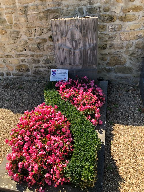 Die Gedenkplatte an seinem Grab zeigt eine Pickelhaube und die Aufschrift
