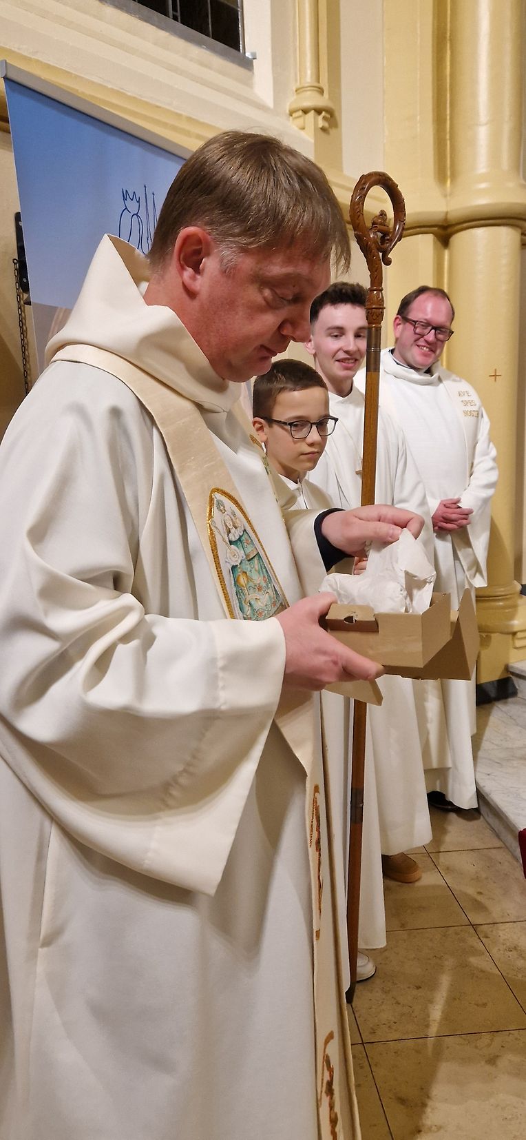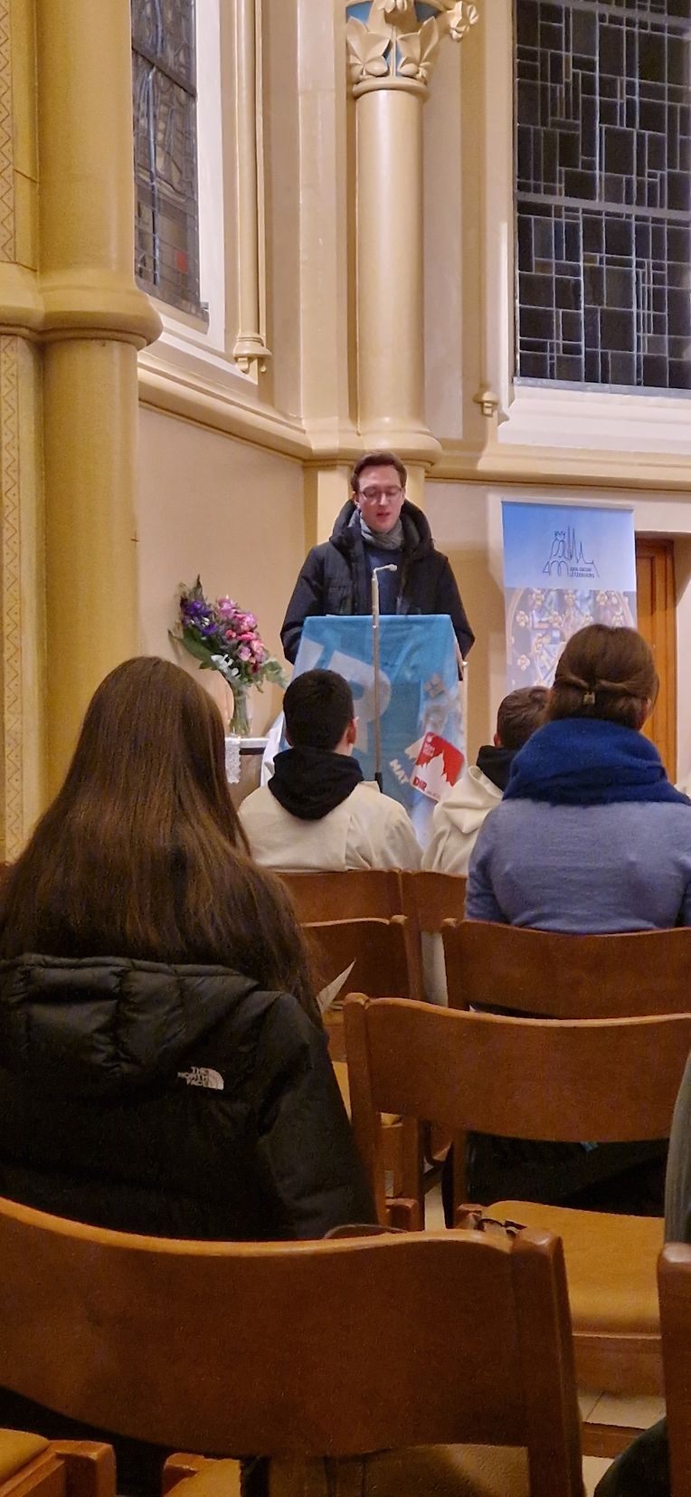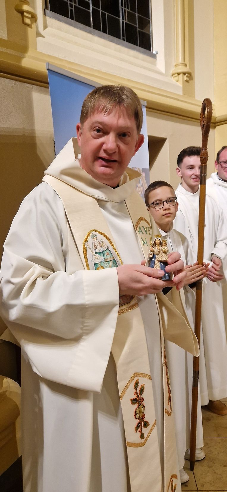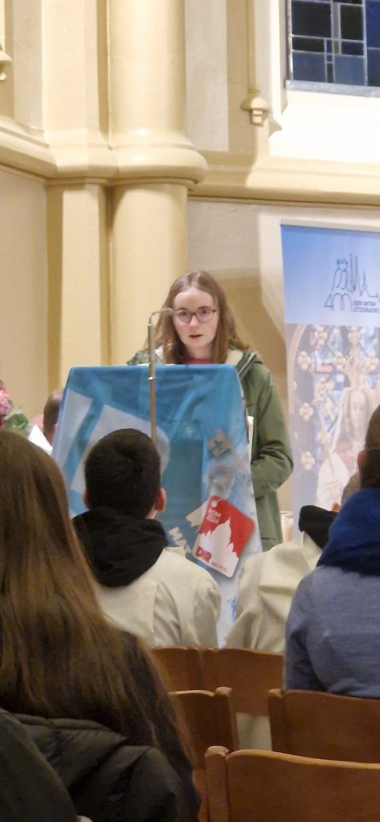 Zum Schluss vun der Mass hu mir och eisem Nationalaumônier, dem Abbé Jempi Reiners, e grousse Merci fir seng Aarbecht als Roum-Guide a Bus-Responsabel gesot an him eng Kopie vun der Tréischterin iwwerreecht.