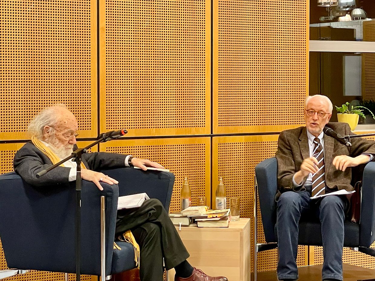 Lambert Schlechter nous a fait l’honneur de présenter le jeudi 17 novembre quelques-unes de ses œuvres. Accompagné par Frank Wilhelm, grand connaisseur des œuvres de l’écrivain, il nous a fait plonger dans un tout autre univers qui est le sien.