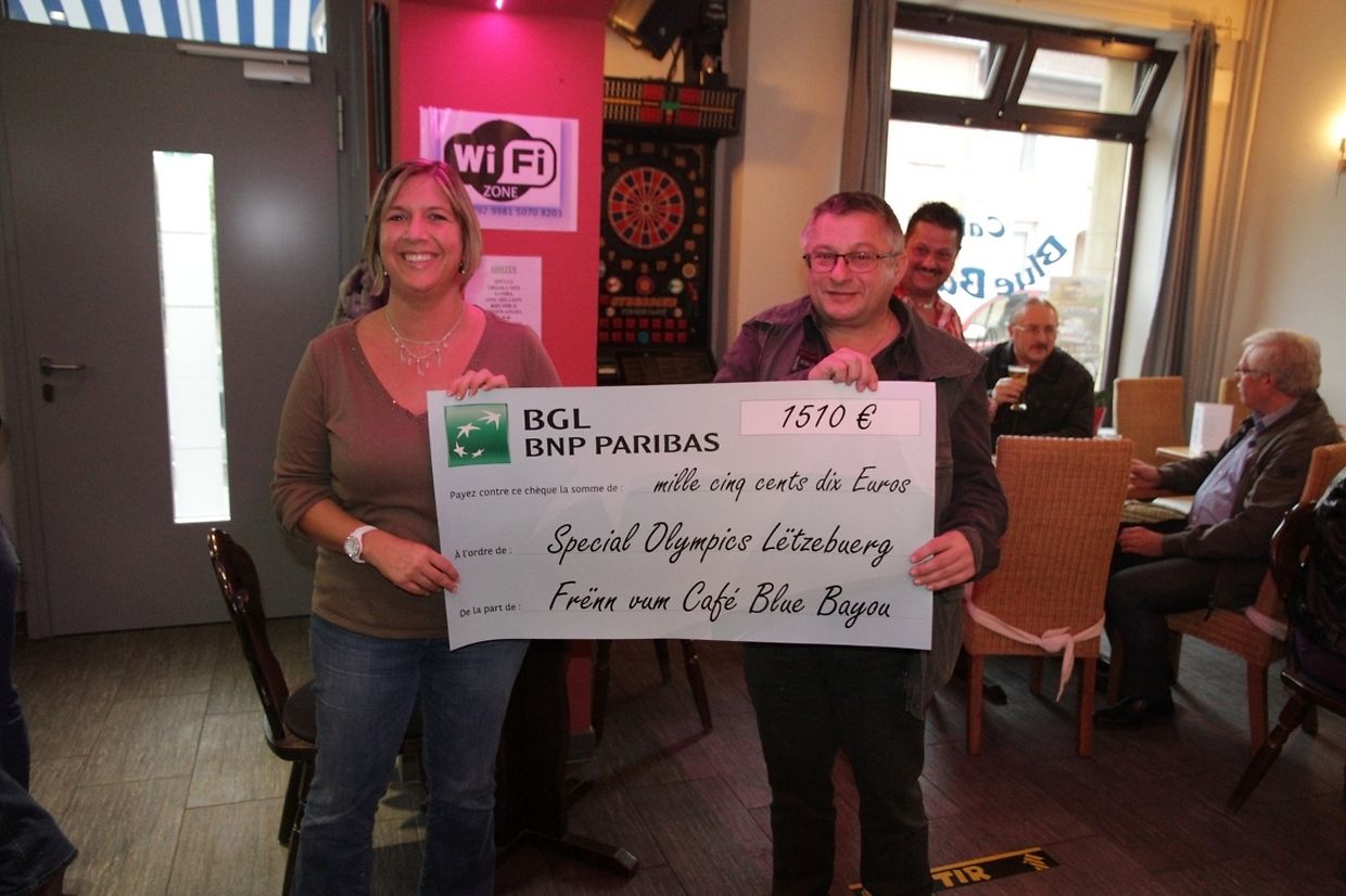 Eine recht originelle Idee hatten die "Frënn des Café Blue Bayou" in Lintgen. Am letzten Samstag organisierten sie ein nicht alltägliches "Mensch ärger dich nicht"-Turnier. Ab 10 Uhr wurde der nicht allzu seriöse Wettstreit in zwei Gruppen ausgetragen, ehe am Nachmittag die Finalisten ermittelt wurden. Diesem Spieletag war eine Geldsammlung vorangegangen. Auch während dem Turnier wurde fleissig gesammelt, u.a. anhand einer großen Tombola. Am Ende kam die stattliche Summe von 1510 Euros zusammen, die nun als Spende an Special Olympics Luxemburg weitergeleitet wurden. Special Olympics ermöglicht es Personen mit einer mentalen Beeinträchtigung Sport zu treiben und bietet wéchentliche Trainingseinheiten in zehn verschiedenen Sportarten an. Nach dieser gelungenen guten Aktion plant man in Lintgen bereits eine Wiederholung dieses speziellen Turniers. Auch nächstes Jahr wird es also "Mensch ärger dich nicht" im Blue Bayou lauten. Und die Würfel werden erneut für den guten Zweck fallen.