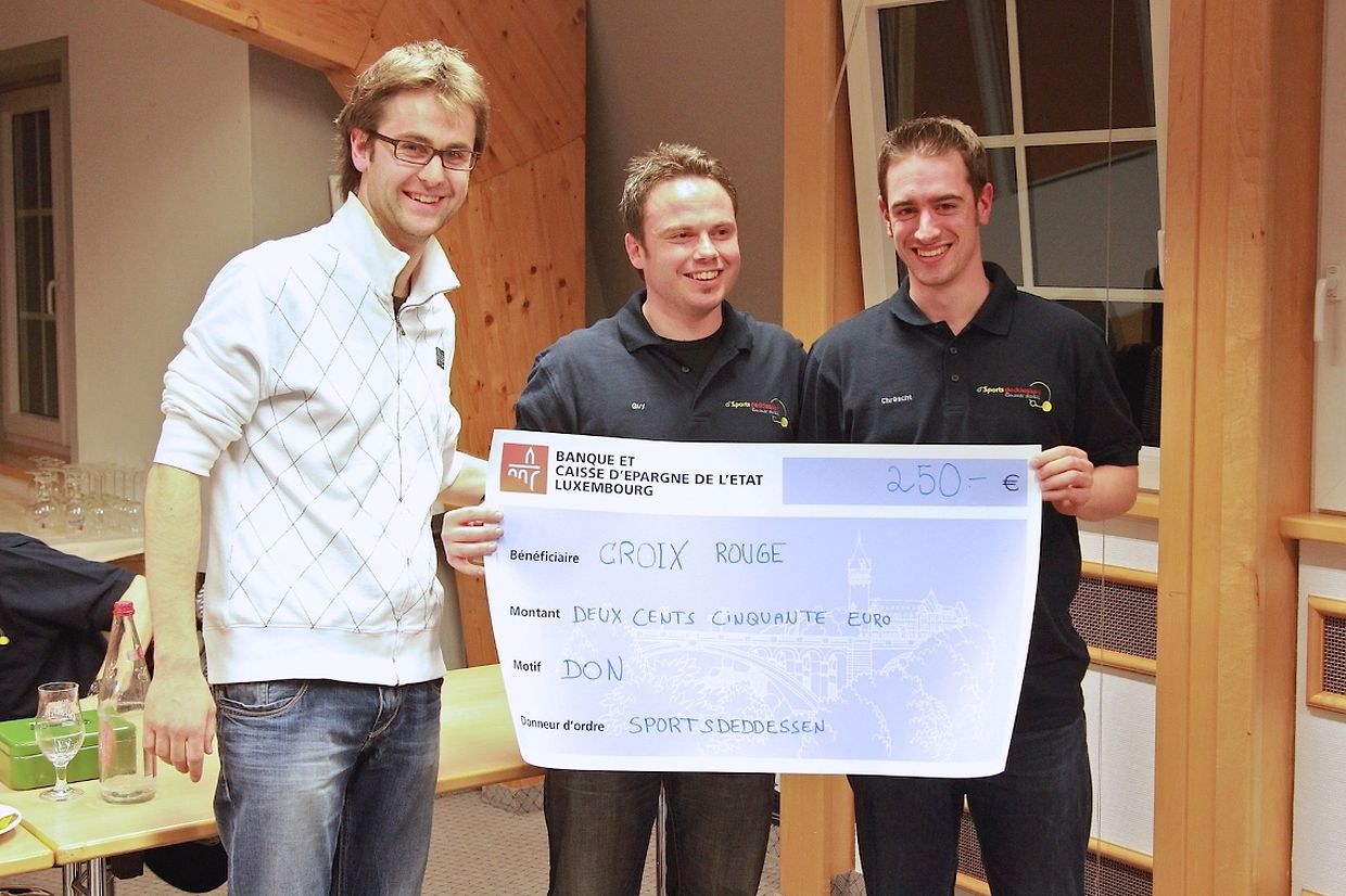 Im Anschluss an seine Rede überreichten die „Sportsdeddessen“ einen Scheck in Höhe von 250 Euro an die Ettelbrucker Sektion des Roten Kreuzes, wofür sich Christian Mohr sehr herzlich bedankte.