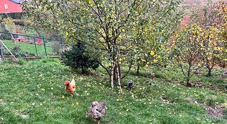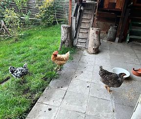Eine heile Hühneridylle hinterm Haus, ist wie ein Seelenheil !