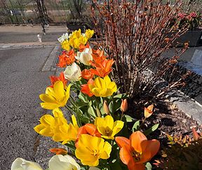 Tulpen im Blumenbeet