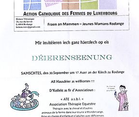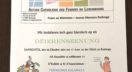 Bénédiciton des animaux 05.10.2024 à 17: 00 à l'Eglise à Rodange
