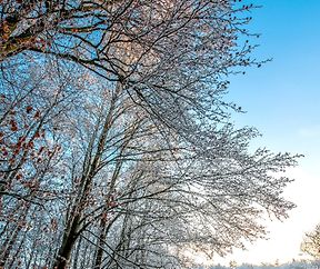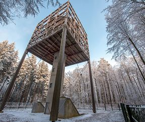De Waassertuerm vum Waldhaff an der Schnéilandschaft
