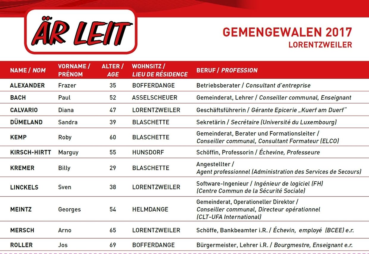 Unsere solidarische Liste „ÄR LEIT“ ist eine offene Kandidatenliste, frei von ideologischen und parteigebundenen Zwängen.