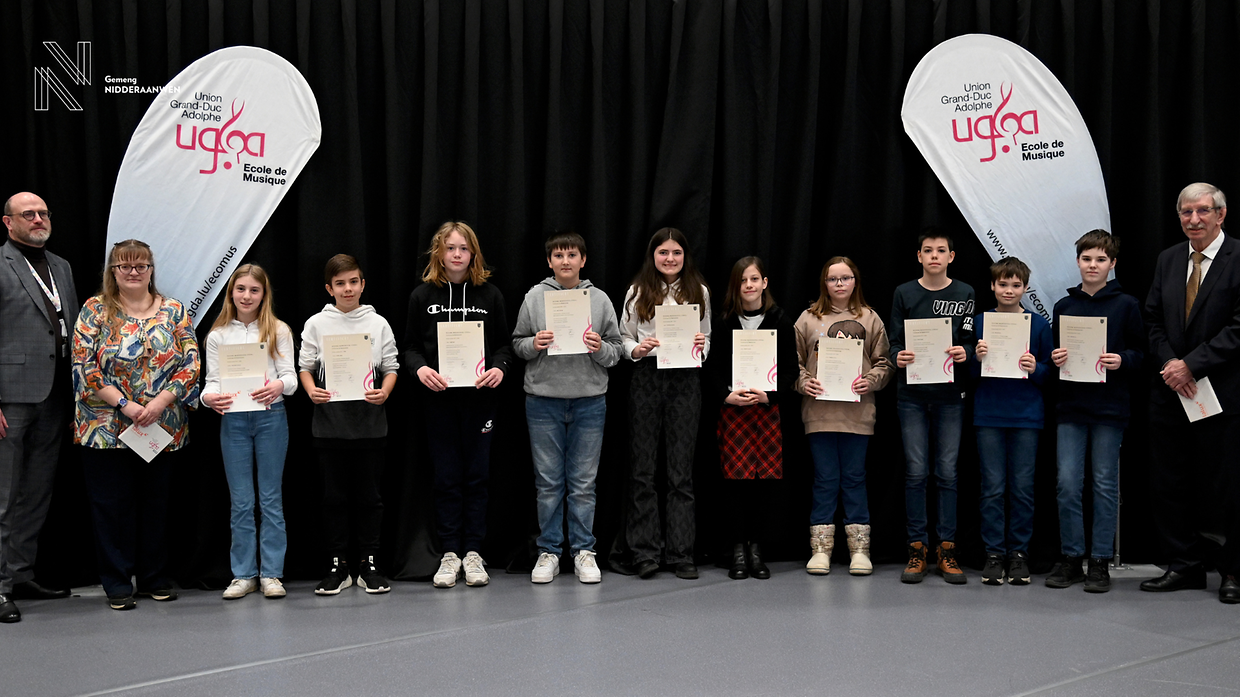 Lorentzweiler Diplomverleihung der Musikschule UGDA Gemeng Nidderaanwen 2 Bildergalerie Bitte scrollen Sie nach unten,um weitere Bilder zu sehen. Veröffentlicht am Freitag, 10. März 2023 um 11:33 Lorentzweiler, Luxemburg Rückblick auf die nationale Diplomverleihung der Musikschule UGDA am 26. Februar 2023 in Lorentzweiler. Wir gratulieren allen Musikschüler und -schülerinnen aus unserer Gemeinde für die tolle Leistung! Unpassenden Inhalt angeben Weitere Neuigkeiten von Gemeng Nidderaanwen > Fest vum héijen Alter zu Nidderaanwen 21.11.25 Niederanven Soirée du Bénévolat 21.11.25 Niederanven 100. Gebuertsdag vun der Mme Dostert-Dondelinger 17.11.25 Niederanven Mérite culturel Niederanven 28.01.25 Niederanven Nationalfeierdag 2024 16.07.24 Niederanven
