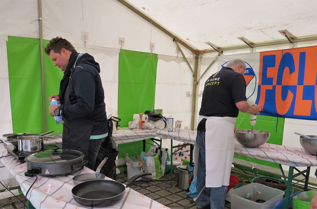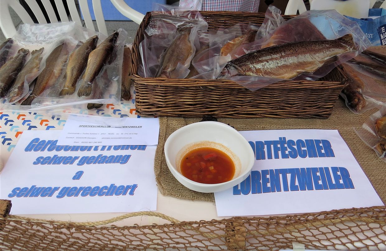 De ganzen Dag iwwer war och fir gutt Iessen gesuergt. Bei dem "Coin de Terre et le Foyer " gouf et gutt Zoppen oder agemaachten Hierken, beim lokale "Fëscherclub " Gulaschzopp , bei den " Luerenzweiler Guiden a Scouten " Gegrilltes an den "FC Lorentzweiler " huet Kniddelen mat Wäinzoossiss oder Kniddelen vegetaresch zerwéiert. Bei dem "Luerenzweiler Jugendclub " krut een eppes géint den Duuscht .