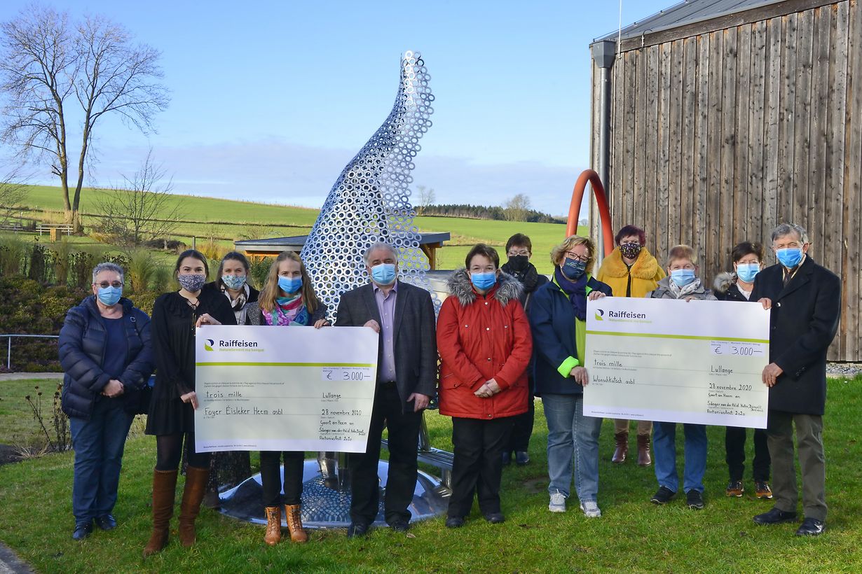 Kürzlich überreichten die Vereine "Gaart an Heem" und "d'Sänger van der Héid" aus Holler, Binsfeld und Breidfeld gleich zwei Schecks von je 3000 Euro an das Foyer Eisleker Heem aus Lullange, sowie an die Vereinigung Wonschkutsch.