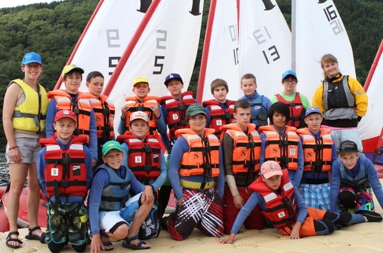 Und kippt dann doch mal ein Boot, so eilt Hilfe mit dem Motorboot herbei. Doch haben die kleinen Segler im Vorfeld geübt, ihr Boot wieder aufzurichten und auch das Bad im Stausee ist nicht so schlimm, liegen die Wassertemperaturen dieser Tage doch bei 20 Grad.