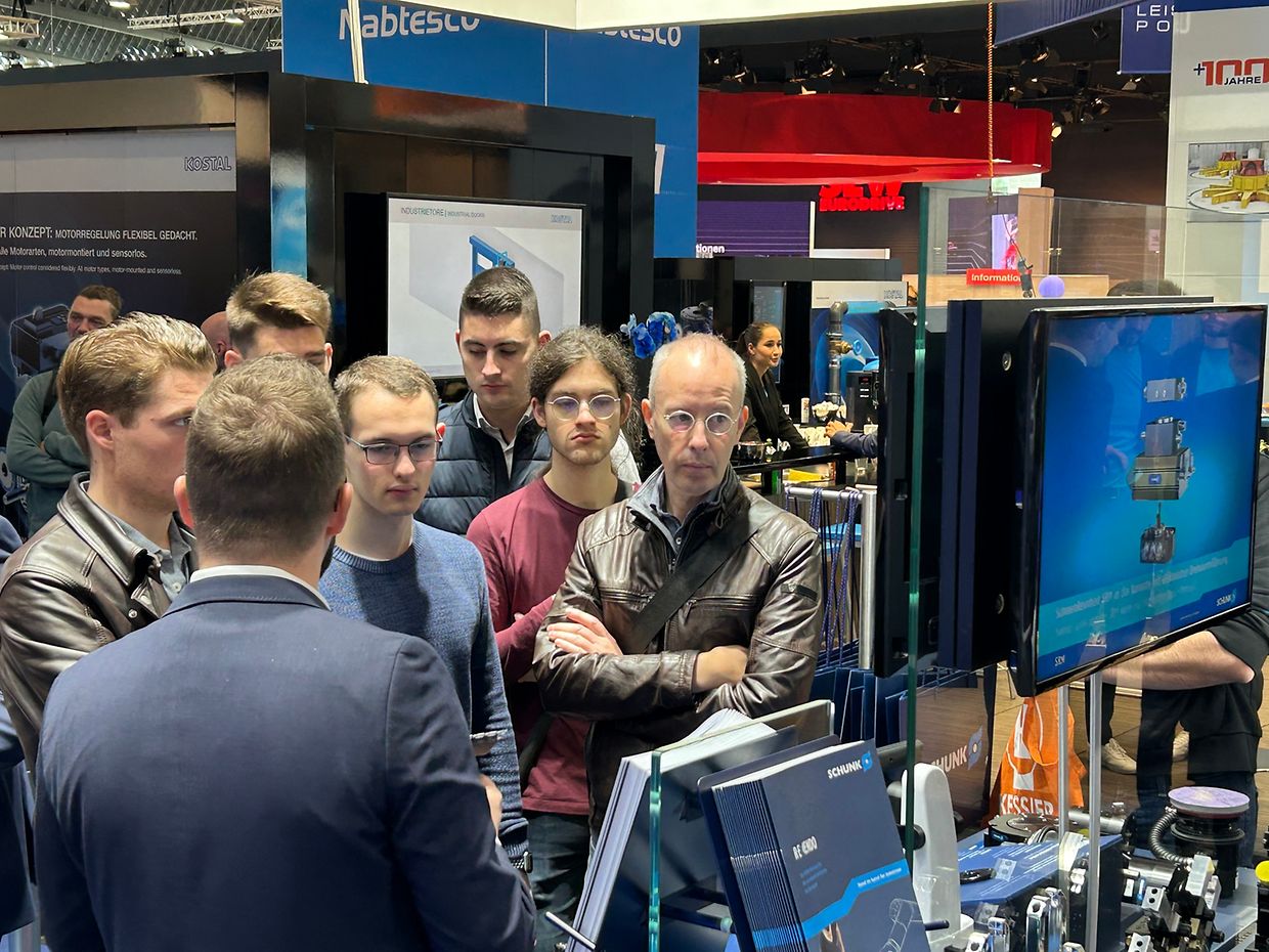 Da die Weltleitmesse Smart Production Solution in Nürnberg dieses Jahr wieder in Präsenz stattfinden konnte, war dies auch für die BTS-Studenten der Studiengänge CBC und GT des Lycée des Arts et Métiers die Gelegenheit Automatisierungstechnik wieder live zu erleben. Auf dem Programm standen nach dem schon traditionnellen Vorabendtreffen mit den Luxemburger Studenten in Würzburg, Standführungen bei renommierten Herstellern wie Schunk, SEW-Eurodrive, Krohne, Sick und B&R auf dem Programm.