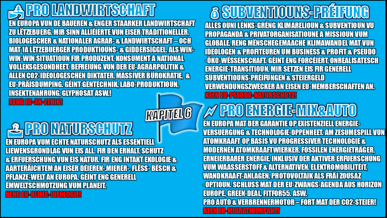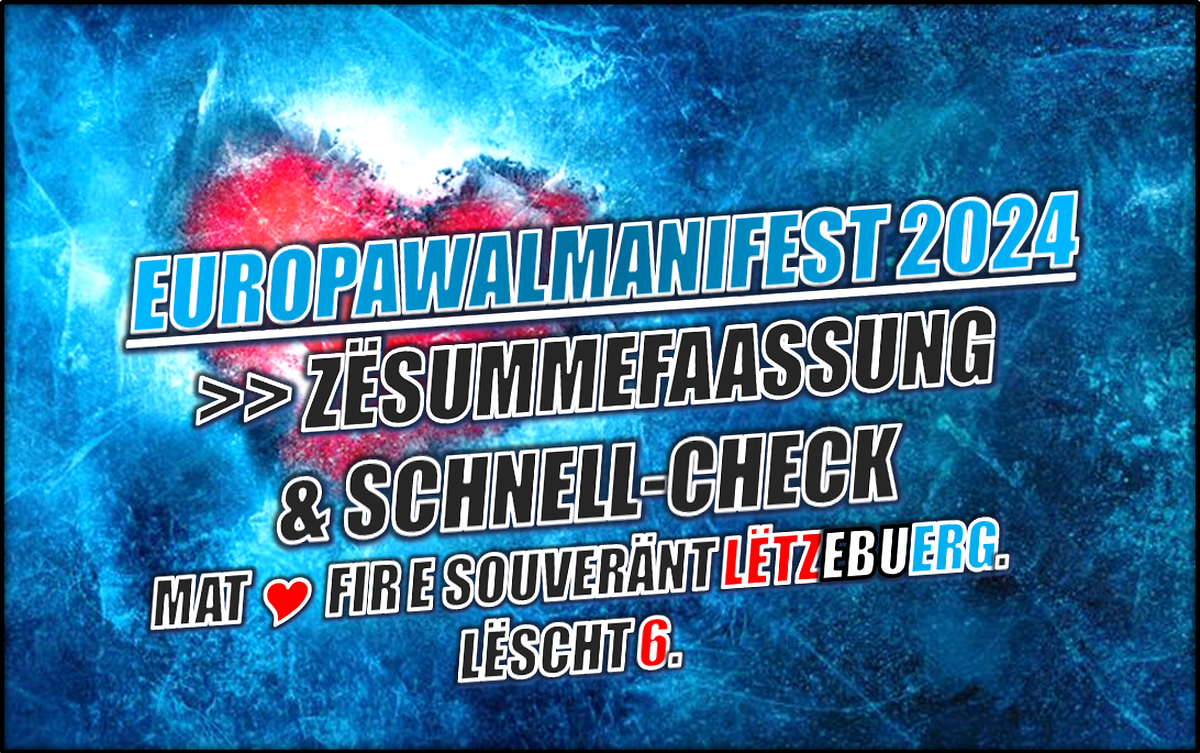 📷Fannt hei eng Zësummefaassung & Schnellcheck vun eisen Iddien & Positiounen aus eisem Europawalmanifest 2024📷📷📷📷