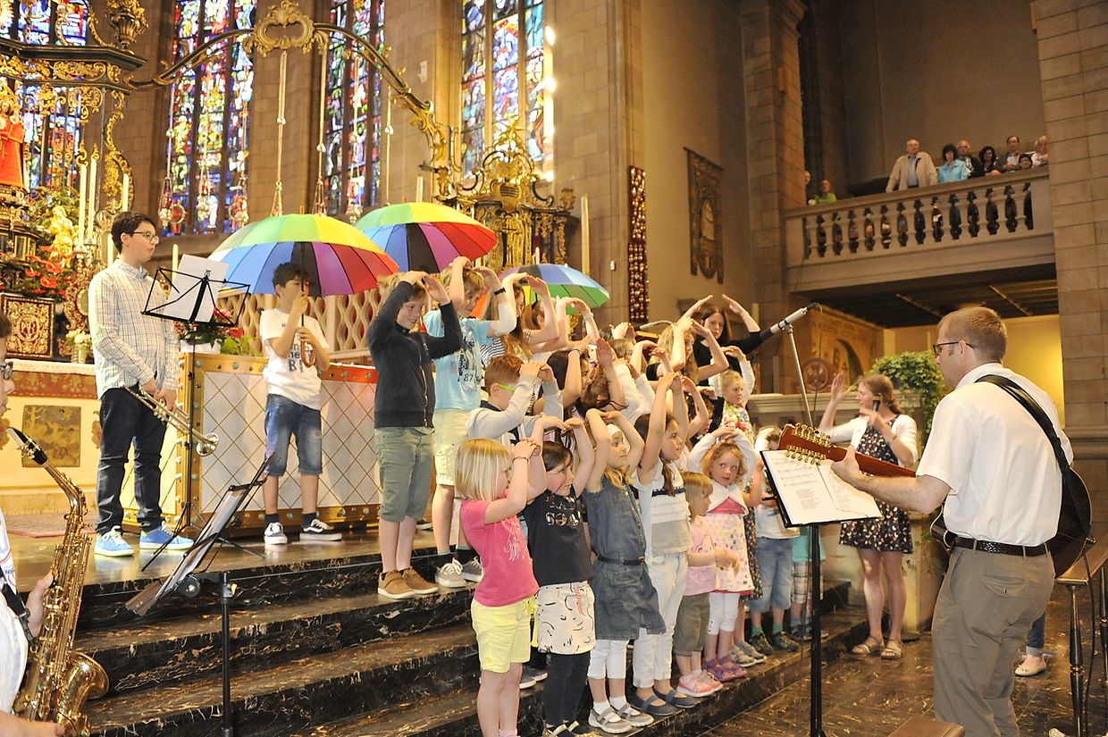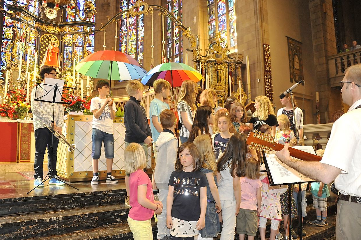 Zum Abschluss der Messe haben sich die Kinder der Pfarrei Wintger unter den Schutz von Maria gestellt, mit dem Lied "Beschirmt, beschützt in deiner Hand".
