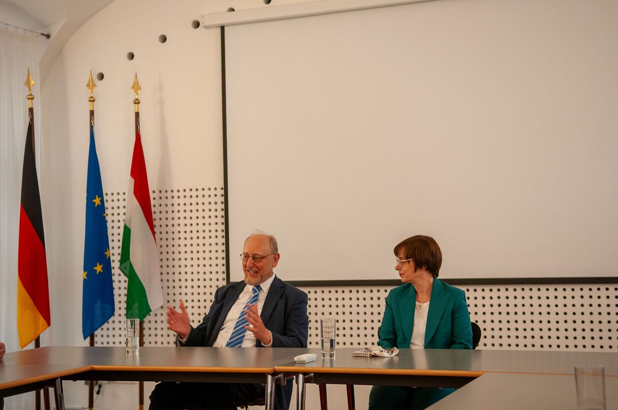 Die Reise begann mit einem Besuch der Vertretung der EU in Ungarn, wo ein aufschlussreiches Gespräch mit Herrn Mátyás Maksi stattfand. Anschließend traf die Gruppe die deutsche Botschafterin Julia Gross in der deutschen Botschaft auf dem Burgberg, um ihre Sicht über die diplomatischen Beziehungen zwischen Deutschland und Ungarn zu erfahren. Die politischen Gespräche des Tages endeten mit einem Besuch der Gruppe bei der stellvertretenden Bürgermeisterin Anett Bösz im Rathaus des 5. Bezirks. Zum Tagesabschluss besuchte die Gruppe die deutschsprachige Andrássy Universität, wo sie von Dr. Heinrich Kreft empfangen wurden.