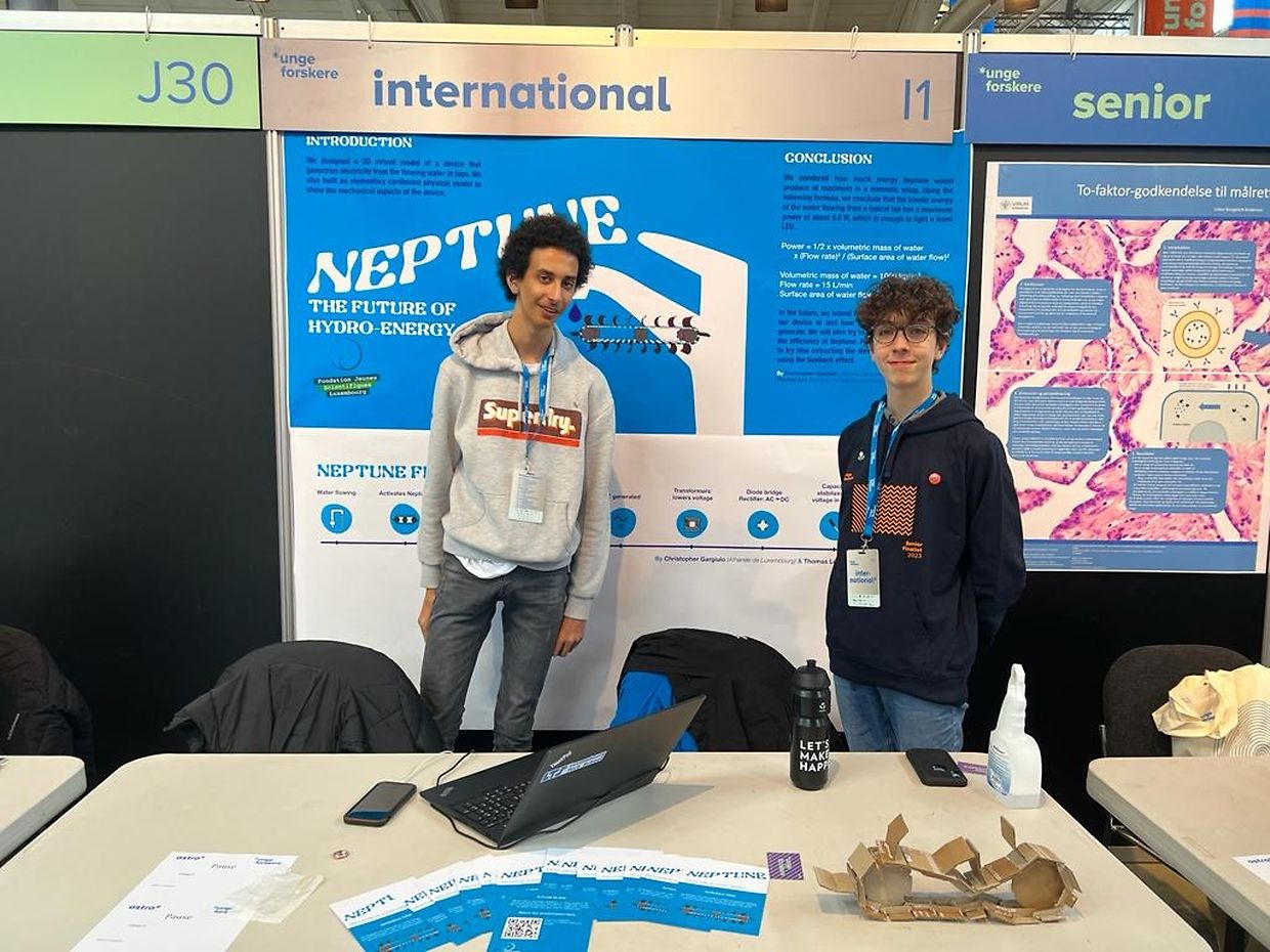 Du 21 avril au 25 avril 2023, s’est tenu à Copenhague le plus grand concours de jeunes scientifiques danois « Unge Forskere » (jeunes chercheurs) organisé par ASTRA*. Pour la première fois, une frange de cette expo-science a été ouverte à des délégations venues d’autres pays. C’est ainsi que la Fondation Jeunes Scientifiques Luxembourg (FJSL) a pu y être représentée par deux lauréats du Concours national « Jonk Fuerscher 2023 » qui ont aussitôt remporté le deuxième prix de cette catégorie internationale !