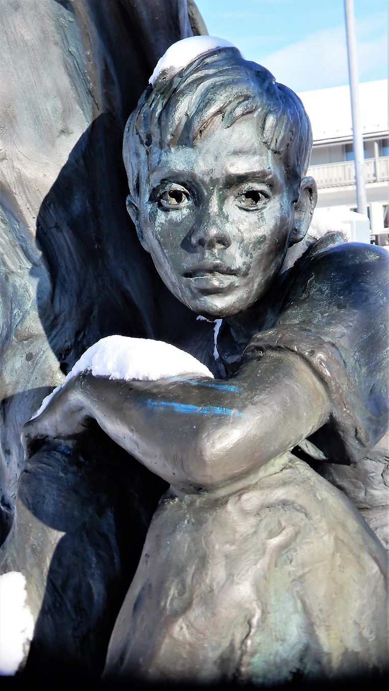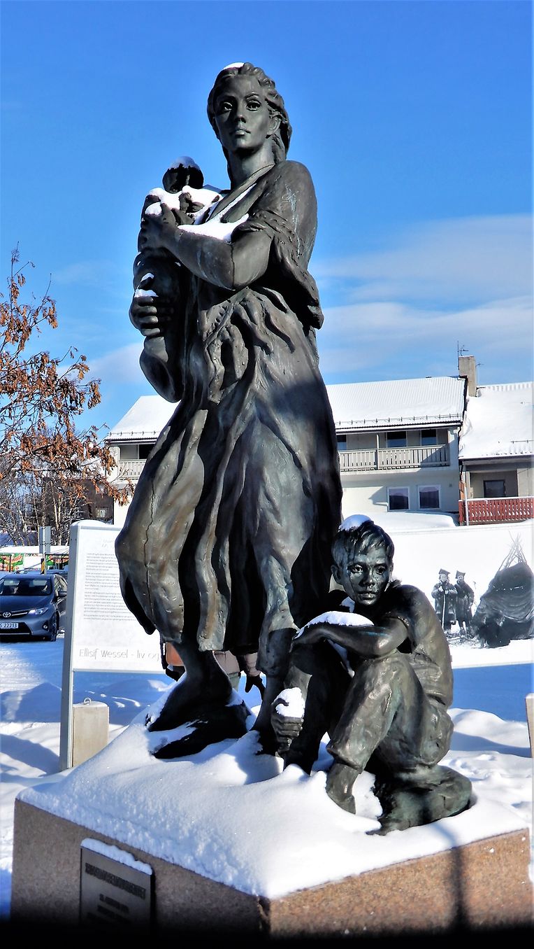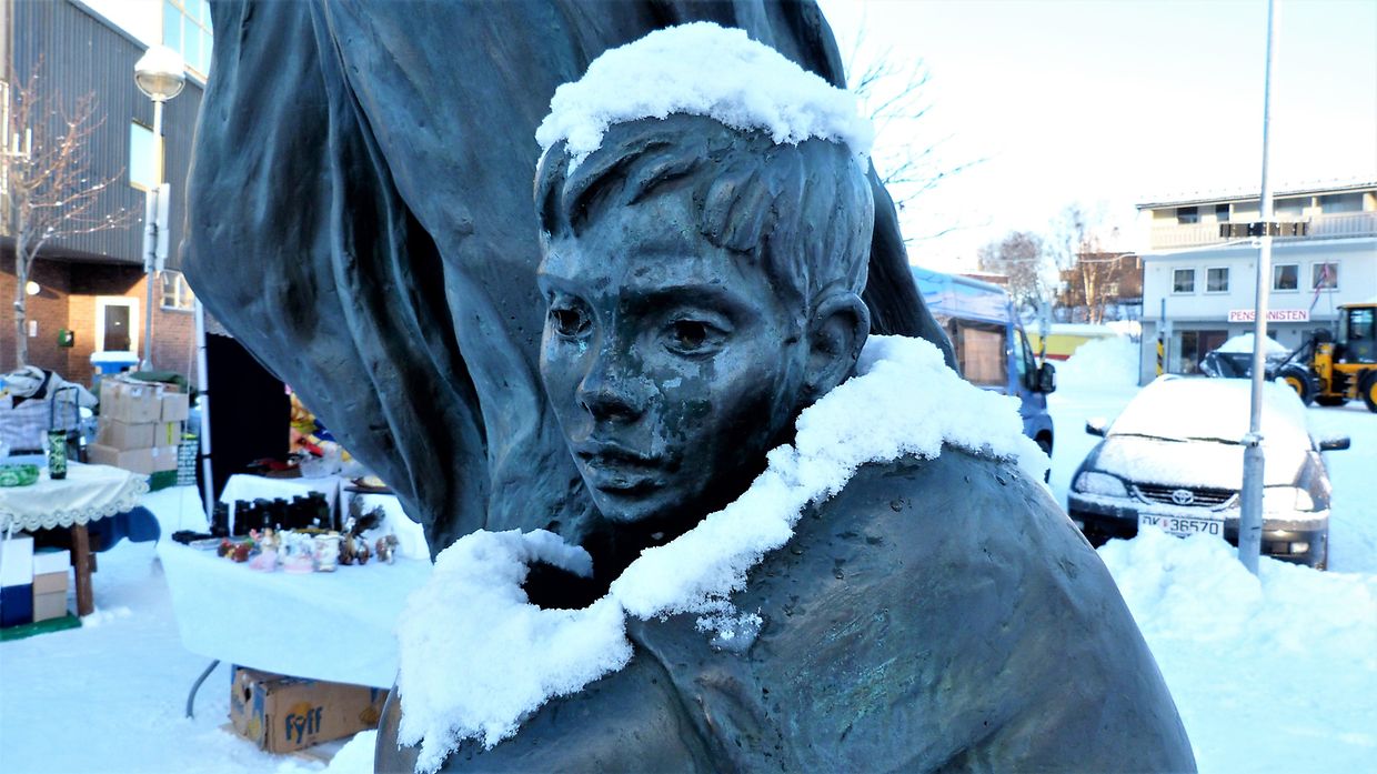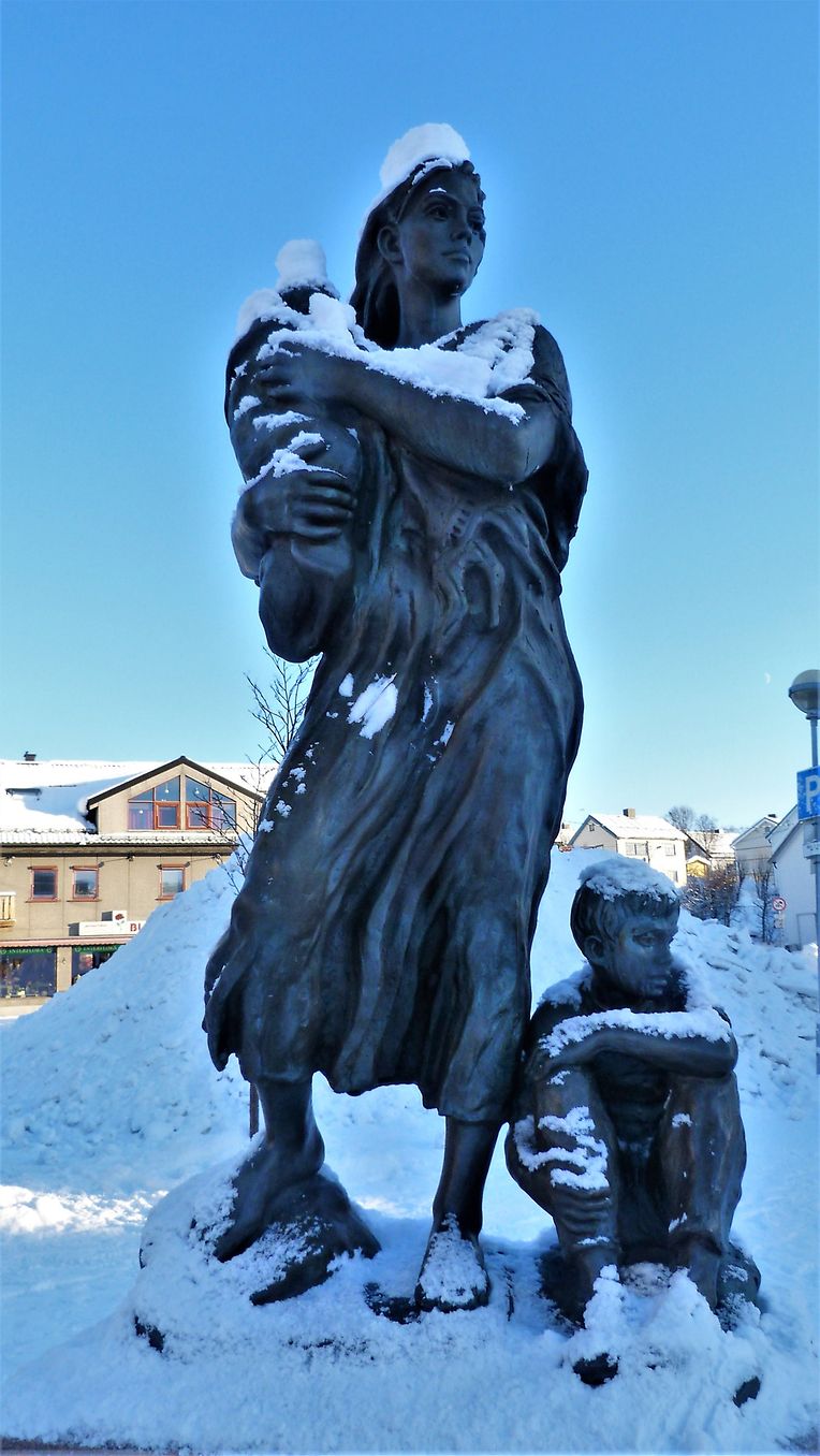 Dës Statue op der Maartplatz vu Kirkenes éiert all d'Mammen aus dem 2. Weltkrich. Dat sin déi echt Heroen gewiescht an dëser Zäit.
