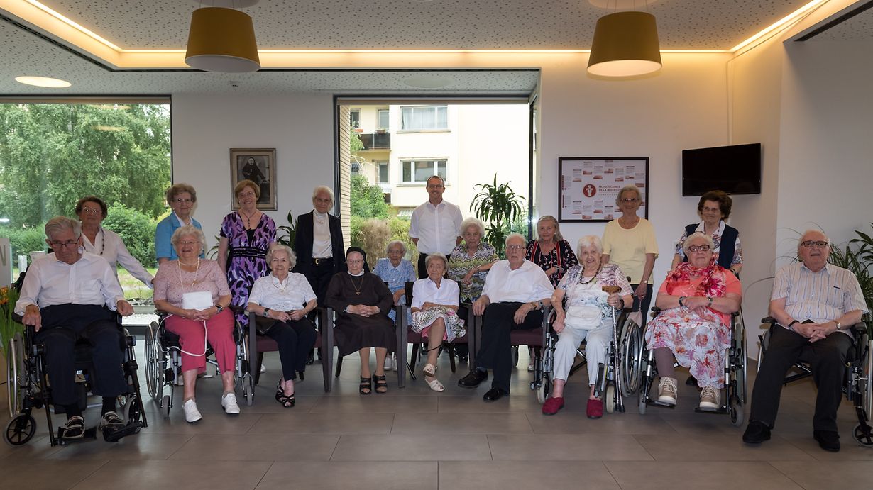 Madame Marguerite DEVISCOUR (76Joer); Madame Nicole GUILLAUME (80Joer); Madame Marianne KRANTZ (82 Joer); Här Guy WENKIN (83 Joer); Madame Marthe LOMMEL (84 Joer); Madame Elisabeth PROST (85 Joer); Madame Marie Anne BACKES-STEFFEN (87 Joer), Här Paul Roger PETIT (87 Joer); Madame Elisabeth SIMONIS (88 Joer); Madame Alice GROOS-MÜLLER (89 Joer); Madame Phylia THILL (90 Joer); Madame Irène WELTER (91 Joer),Här François MÜLLER (91 Joer); Madame Georgette MEDERNACH-SCHENGEN (92 Joer); Madame Karolina DORICIC (93 Joer), Madame Marie Suzette HÜBNER-MOUSEL (93 Joer), Madame Françoise REUTER (93 Joer); Schwëster Melanie NEU (94 Joer), Madame Angela SCHULER (94 Joer), Madame Maisy STIRN-BUCK (94Joer); Madame Ruth Elisabeth LAUSE-LEHNERT (95 Joer); Madame Marthe FUSENIG-GIRA (96 Joer); Madame Marcelle MERGEN-WEBER (100 Joer).